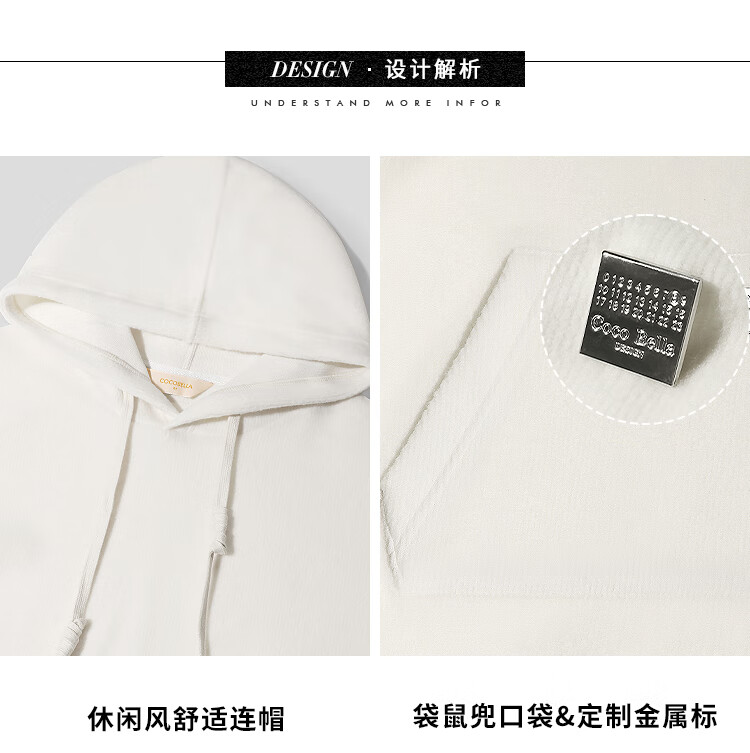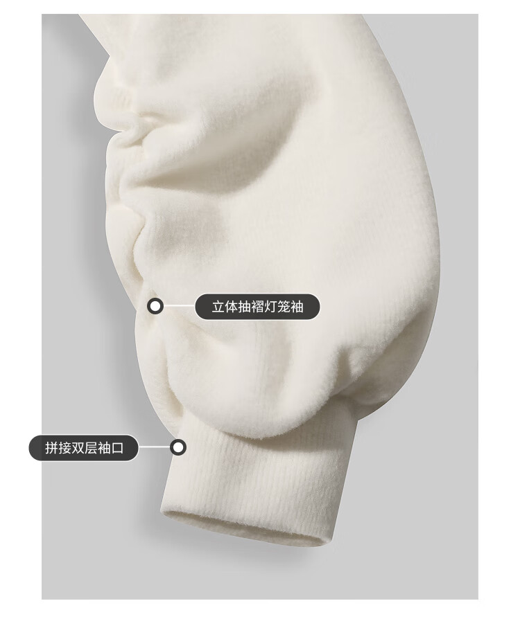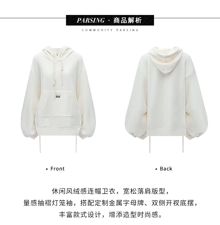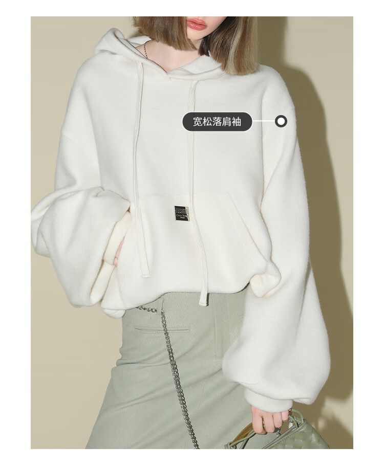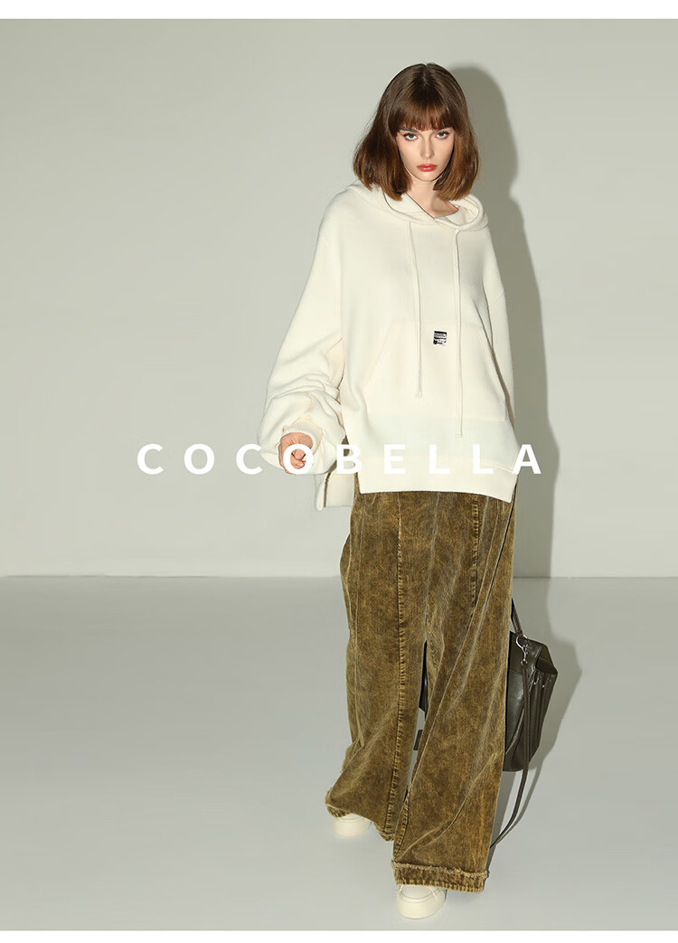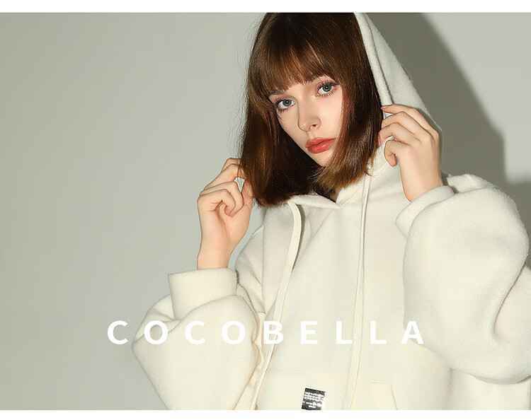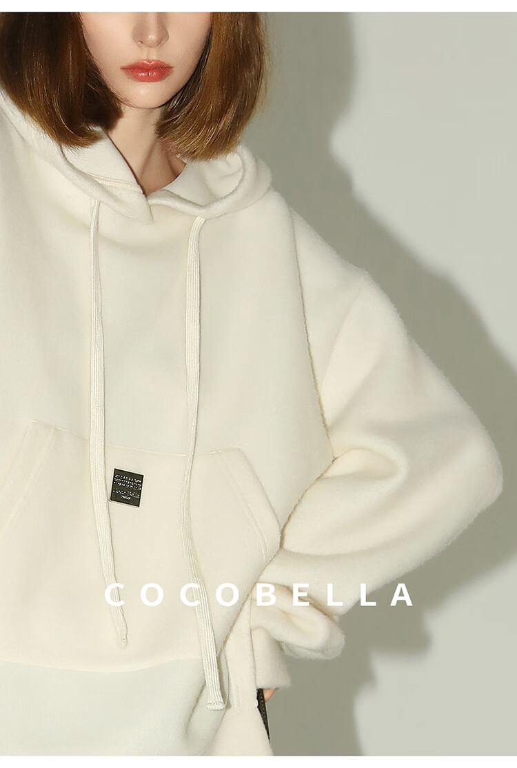 COCOBELLA软糯绒感灯笼袖卫衣女宽松休闲开叉针织帽衫SE0001B