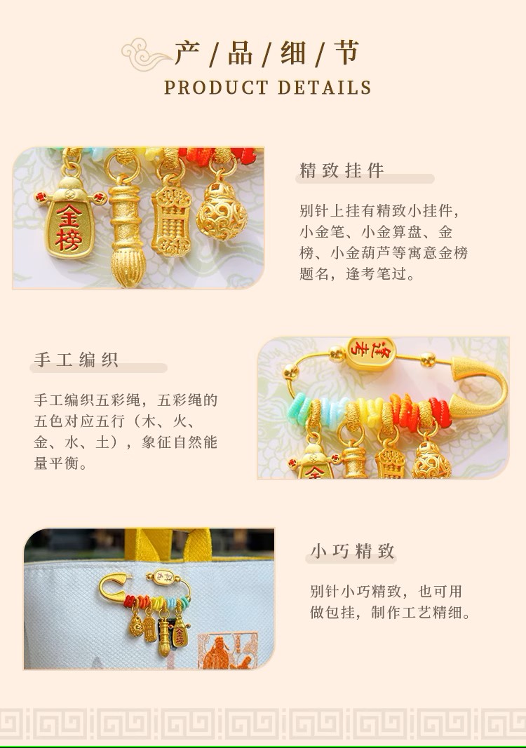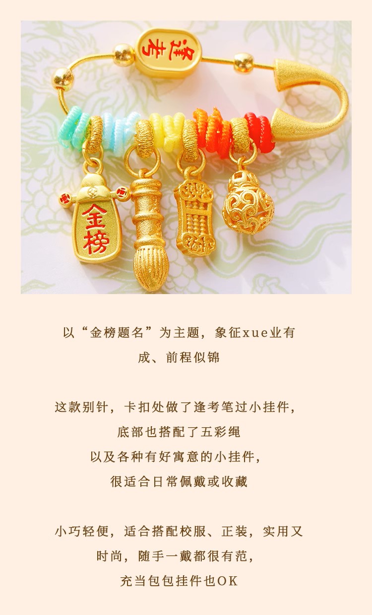 杭州灵隐文创考试别针金榜题名五彩新中式别针高考中考逢考过挂饰