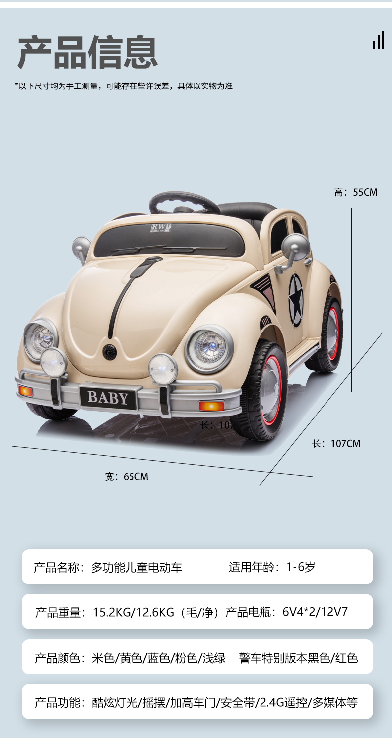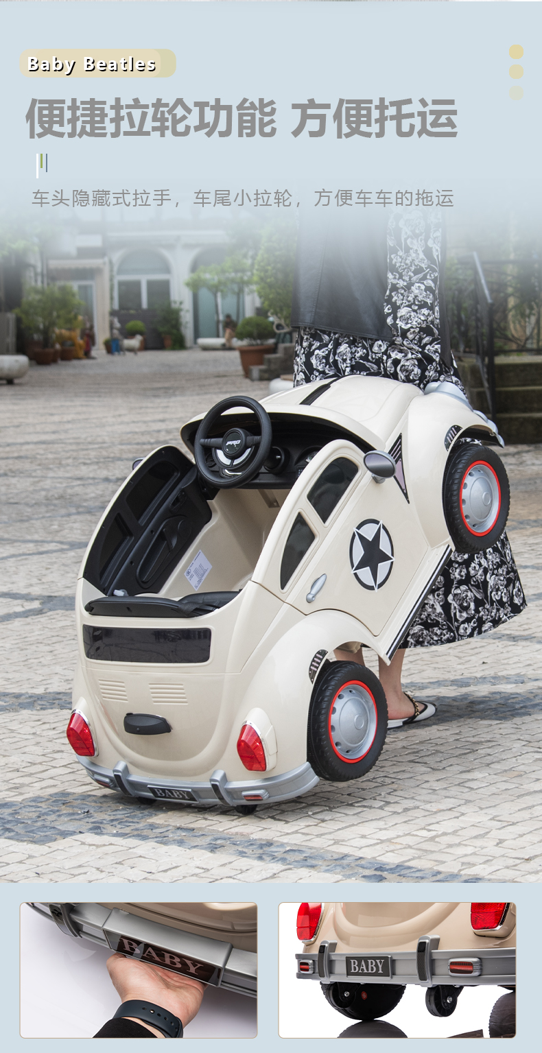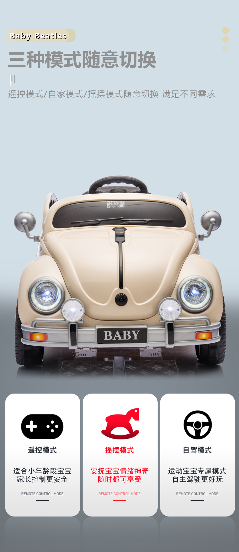 【独特的外观设计, 车头复古炫酷LED灯光与外观设计 ,仿真座椅及尾翼更具魅力 】+【 遥控器可控制调速,缓起缓停,加速减速,揺摆运动,电源,刹车系统等功能】+【一键启动】+【早教功能】+【英语故事】+【LED大灯】+【USB插口】+【摇摆功能】+【双开门】+【手机APP】