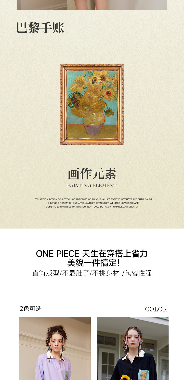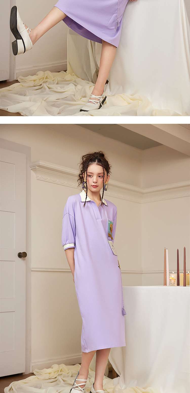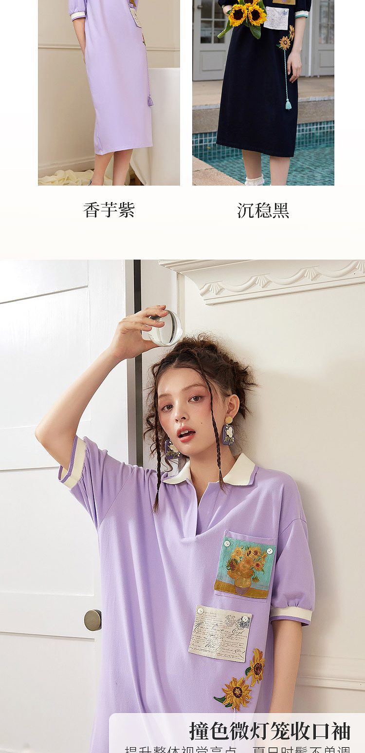 两三事巴黎手账 夏季休闲印花布口袋绣花polo领连衣裙