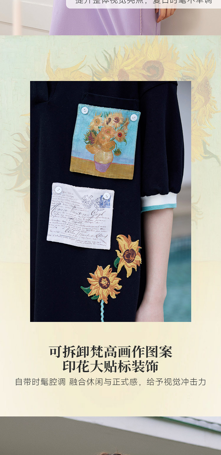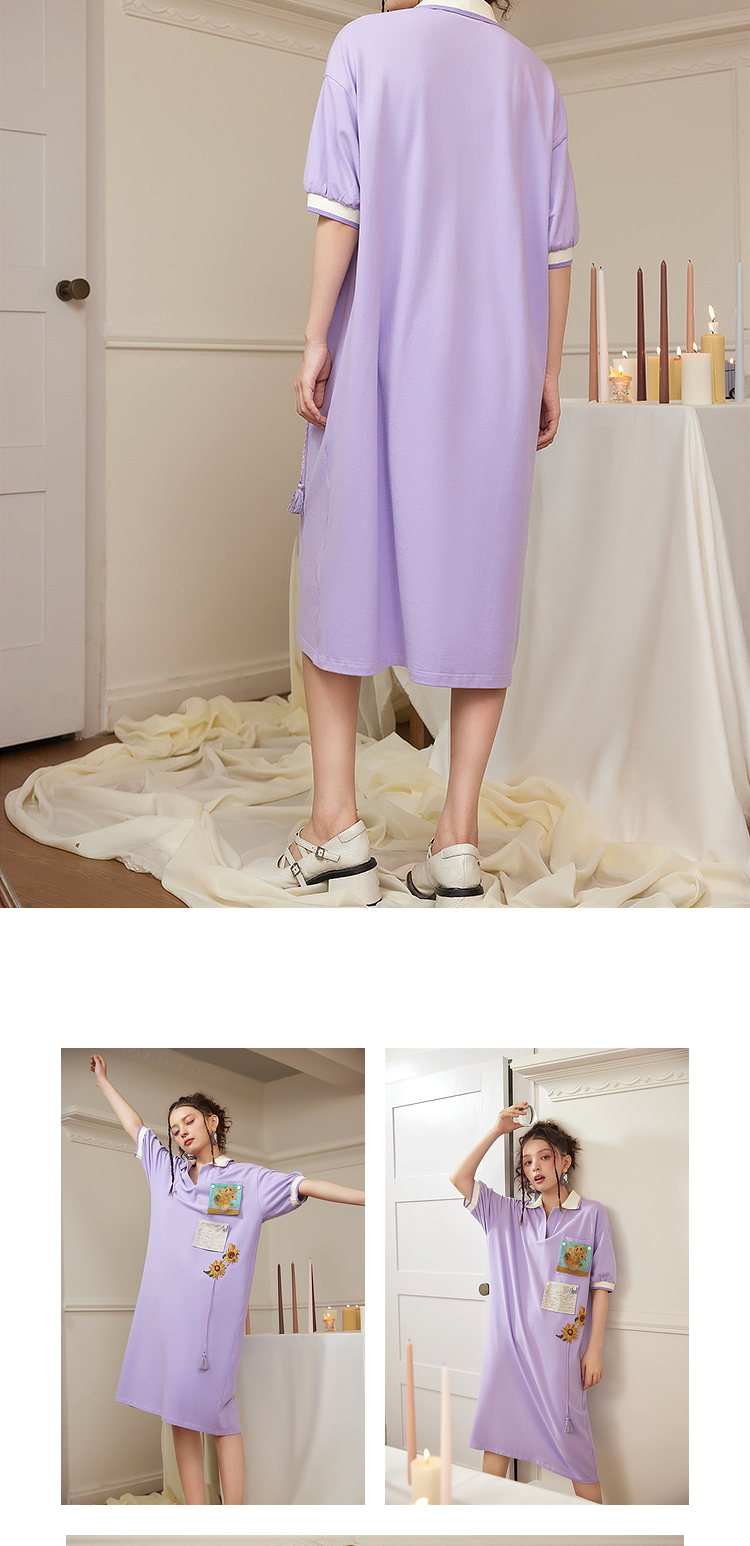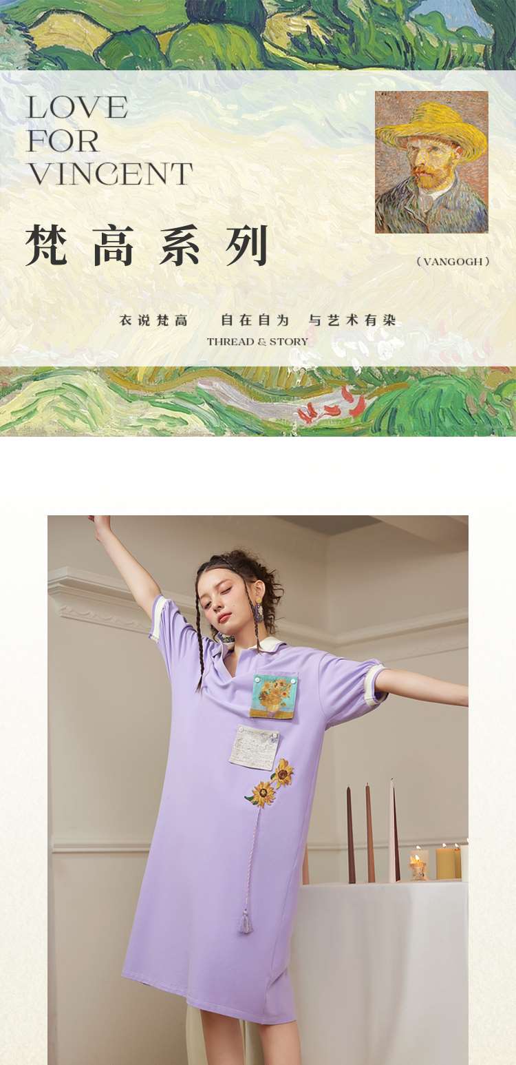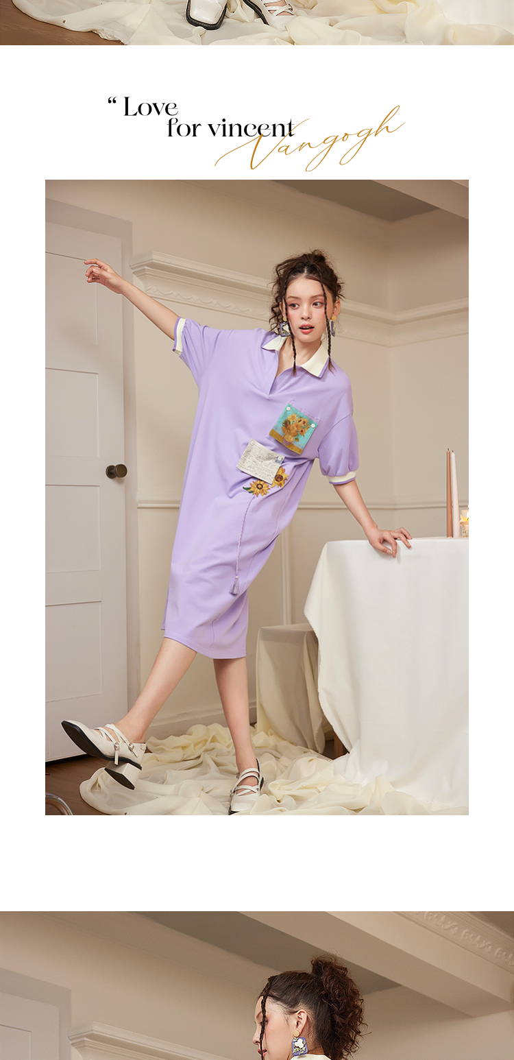 两三事巴黎手账 夏季休闲印花布口袋绣花polo领连衣裙