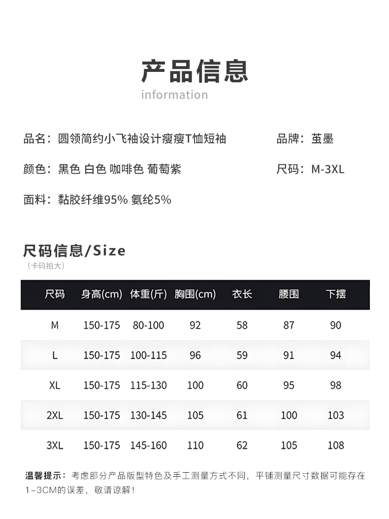 【2件装】茧墨 圆领简约小飞袖设计瘦瘦T恤短袖