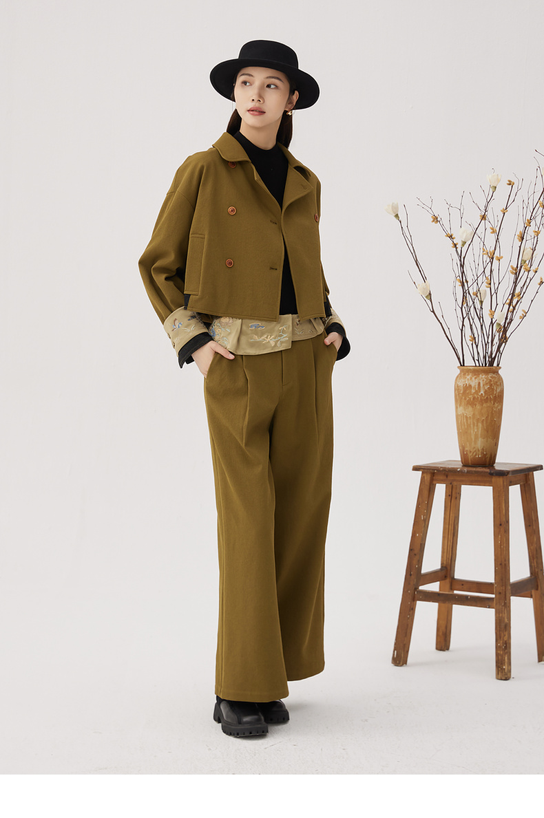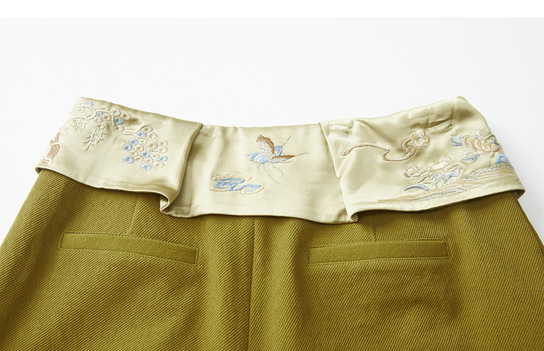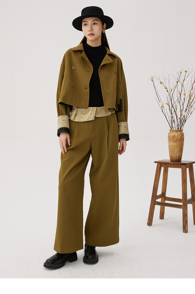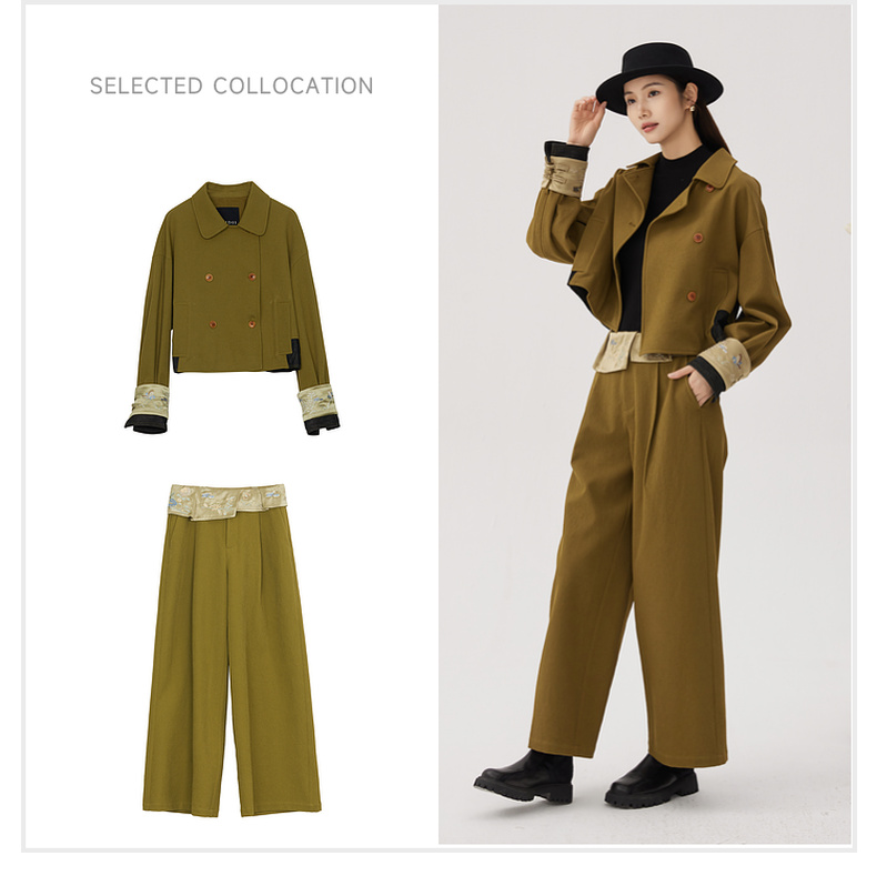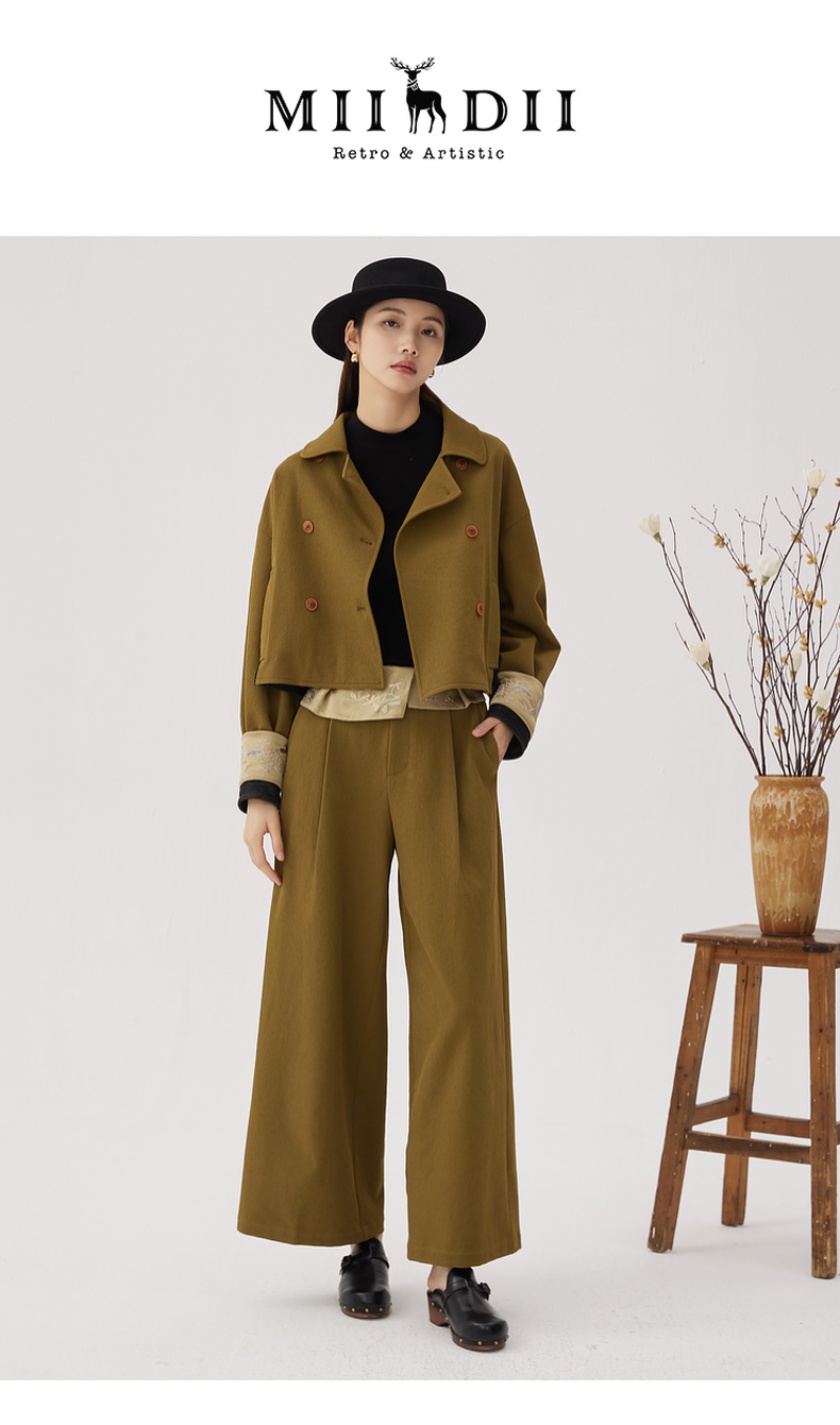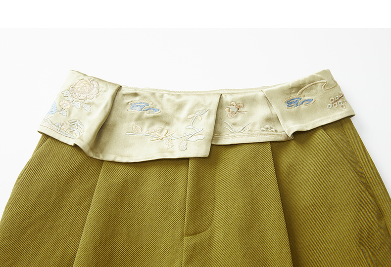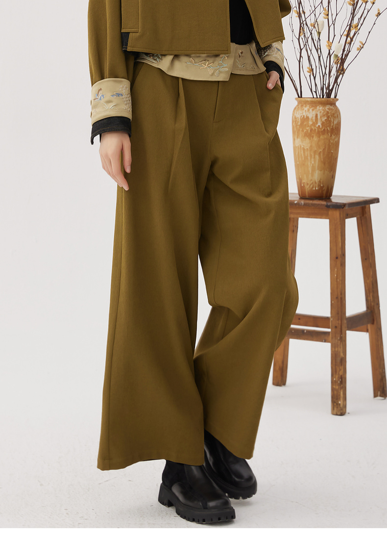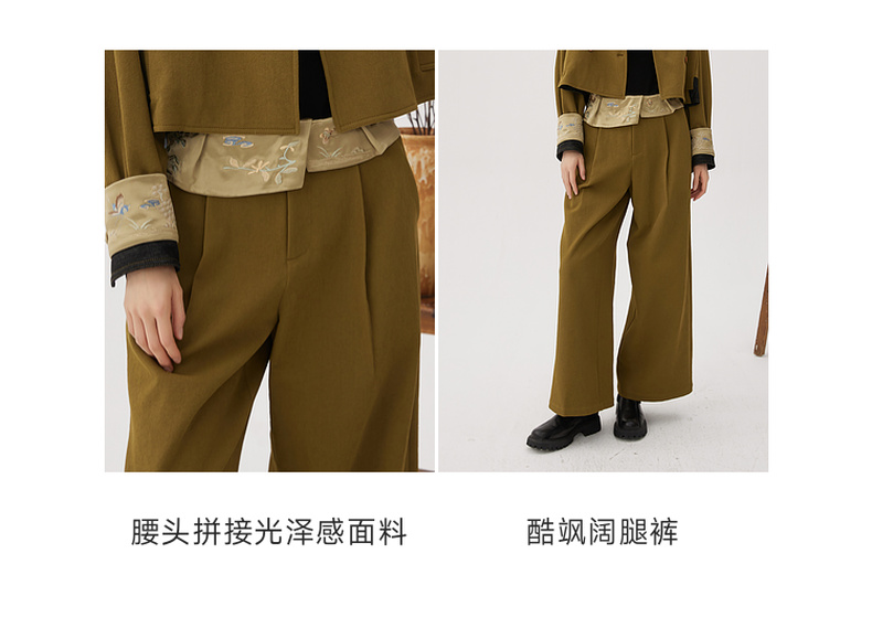 谜底阔腿裤女士2024秋新品通勤风腰头拼接特色宽松长裤243MK1024