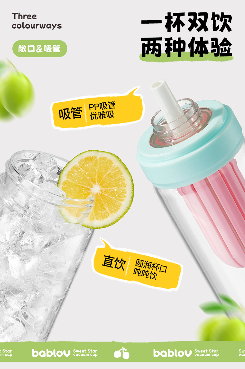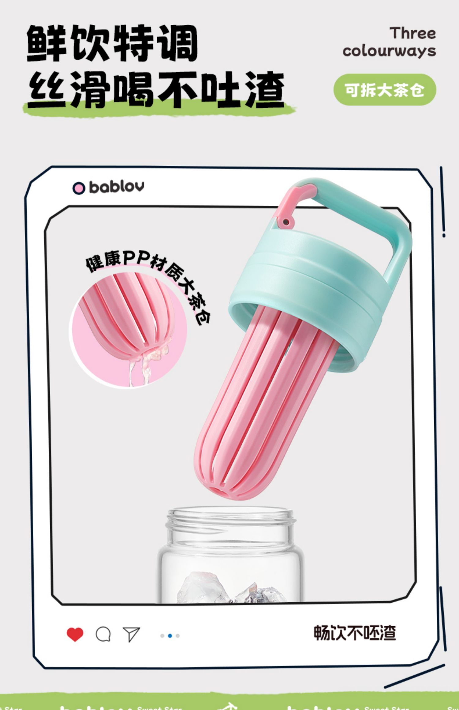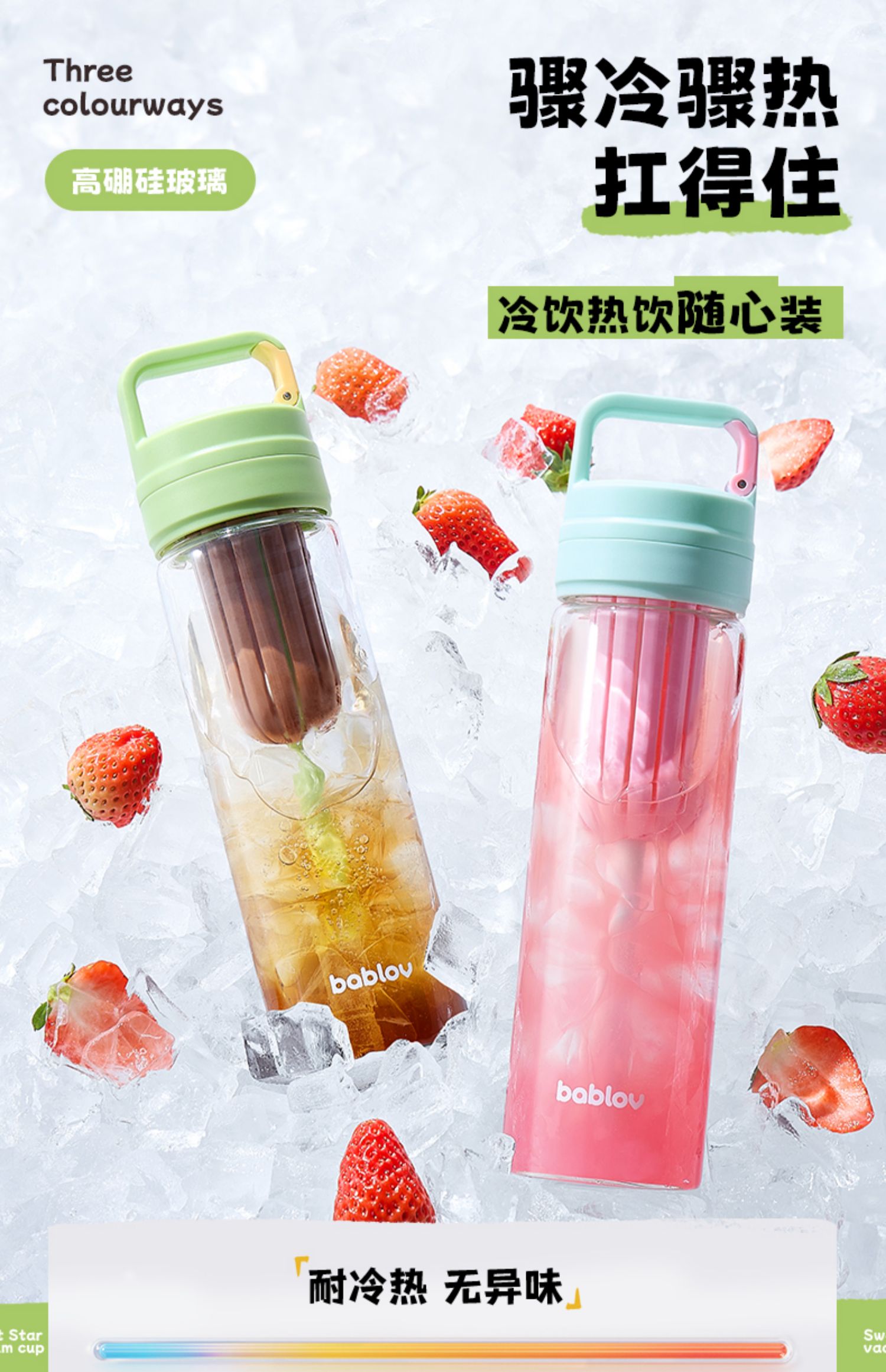 bablov玻璃杯女生高颜值吸管杯夏季大容量水杯便携杯茶水分离杯子