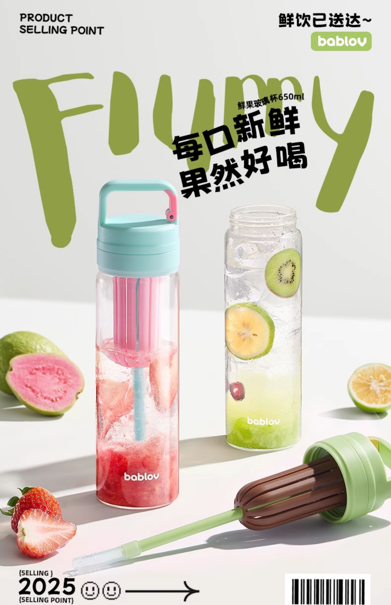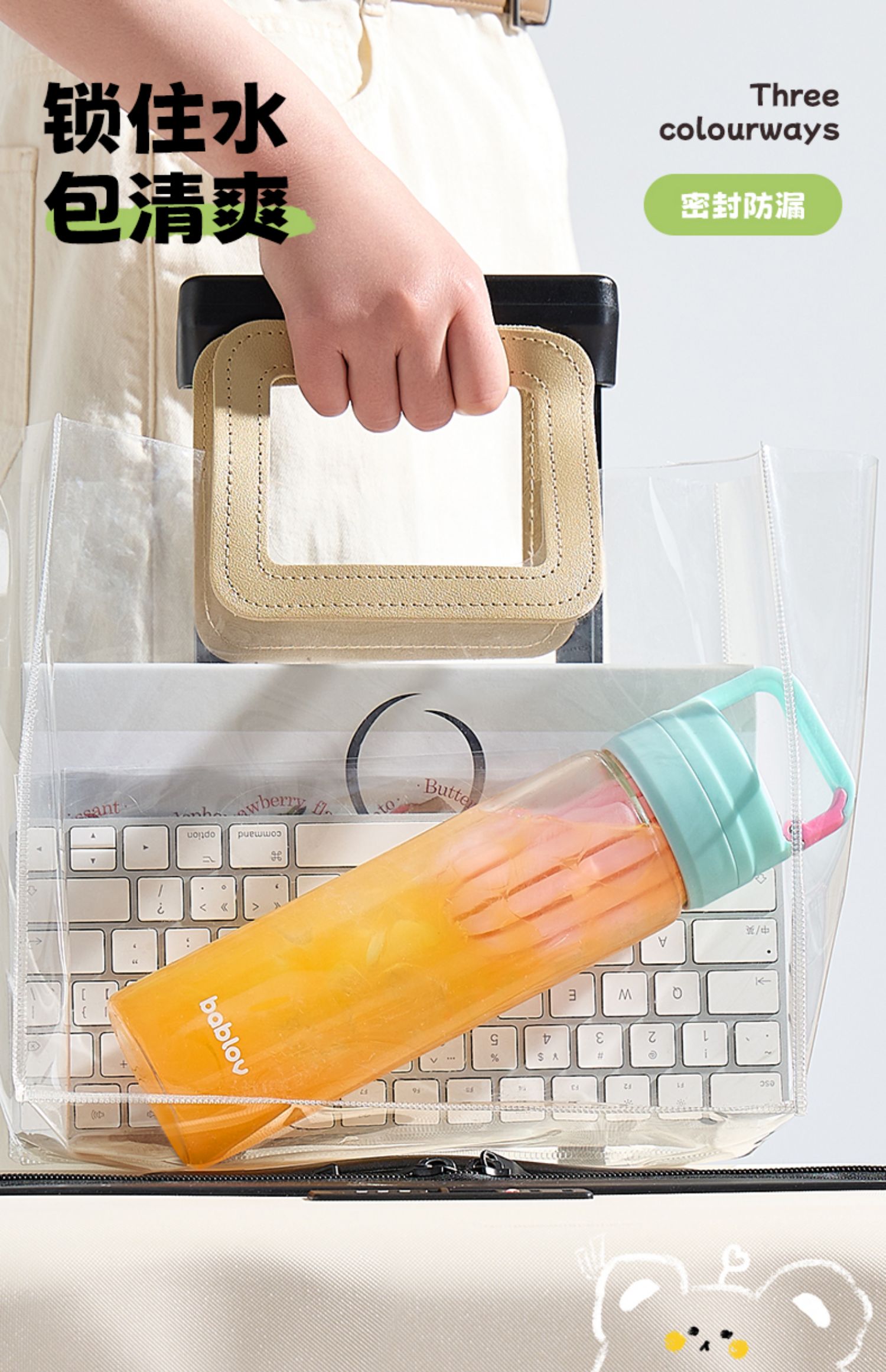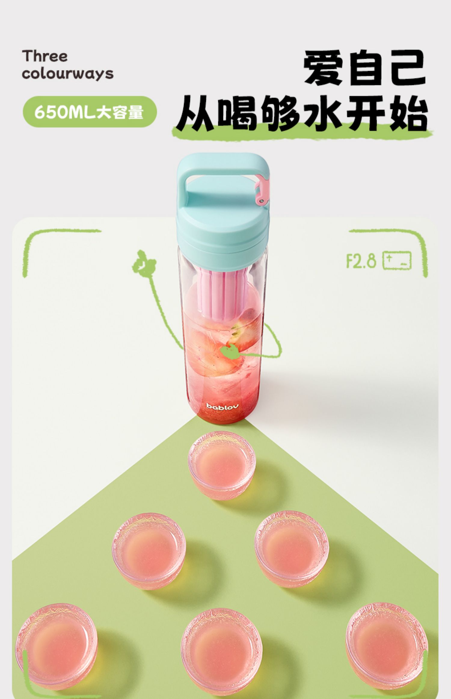 bablov玻璃杯女生高颜值吸管杯夏季大容量水杯便携杯茶水分离杯子