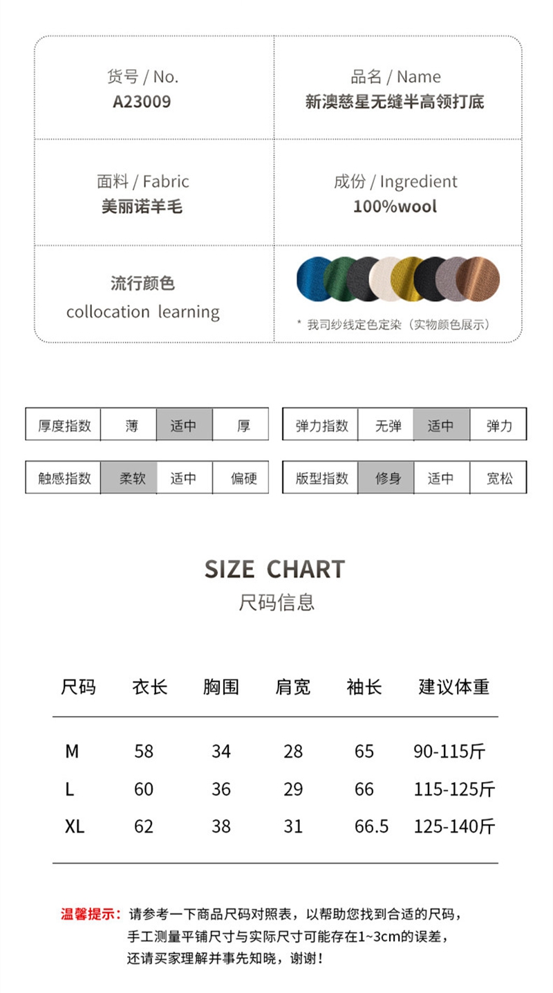 一线成衣新澳100精仿柔软亲肤羊毛半高领长袖无缝全成型针织衫