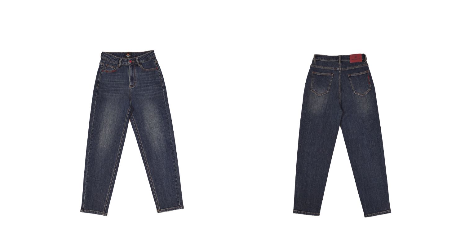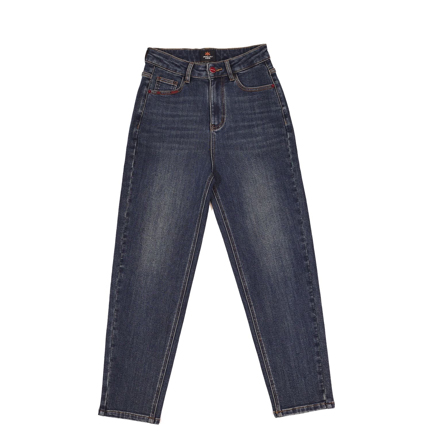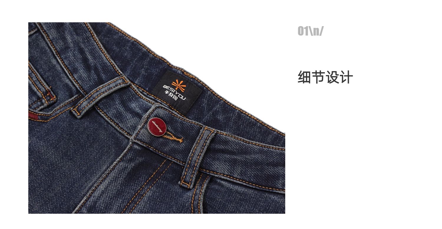 半身缘女裤 秋季柔软棉弹腰部皮牌锥形牛仔裤253302U10120048