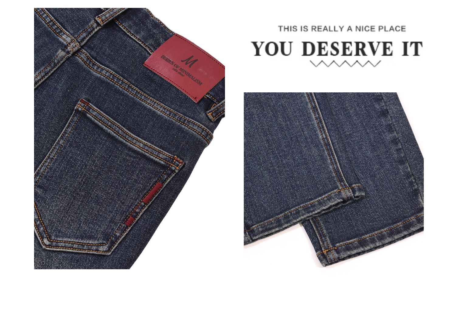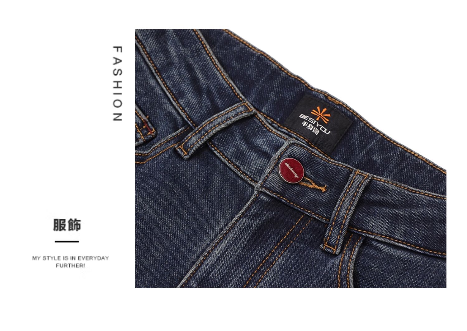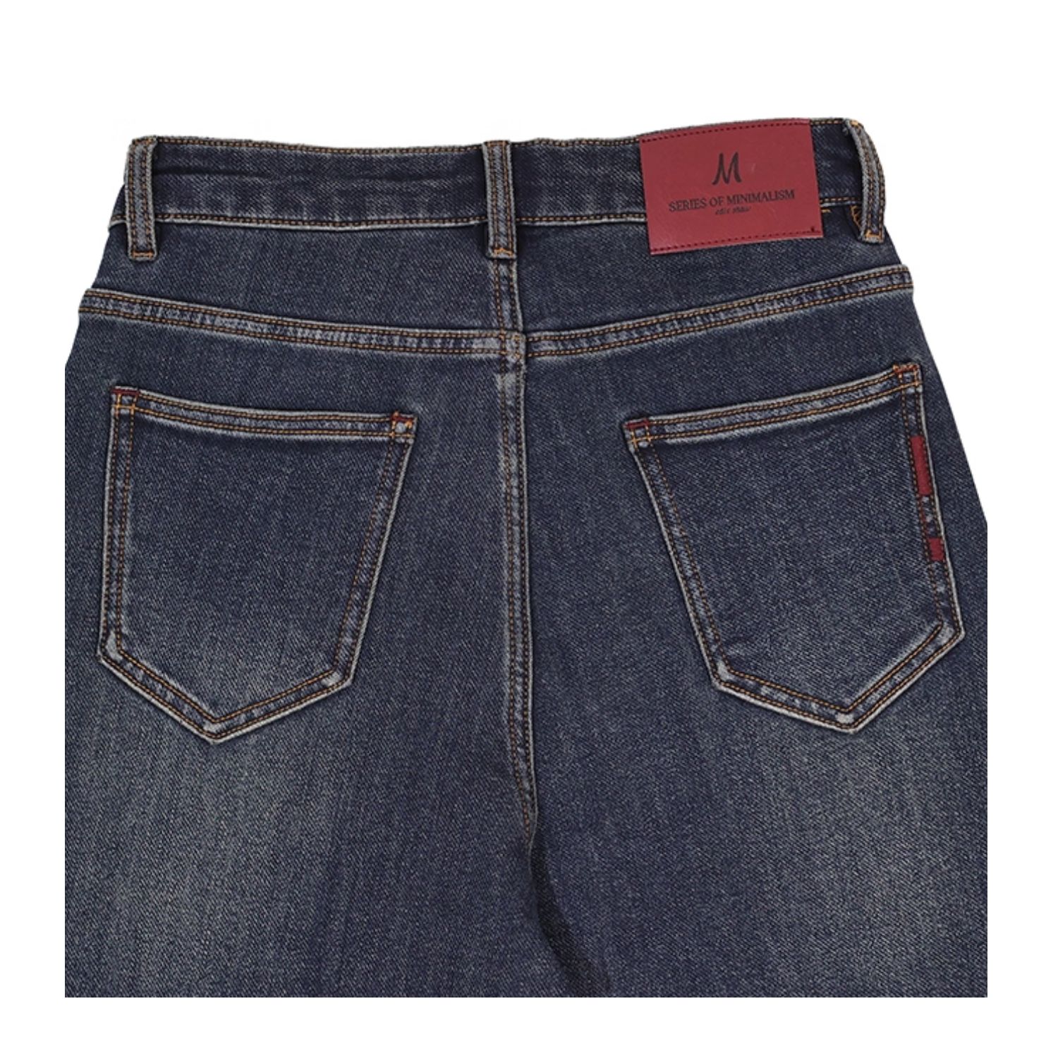 半身缘女裤 秋季柔软棉弹腰部皮牌锥形牛仔裤253302U10120048