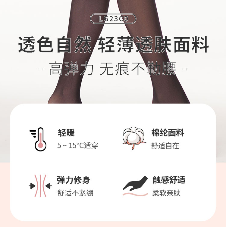 都市丽人基础系列轻暖5至15度薄连裤袜锦纶薄裤袜打底裤LG23C0