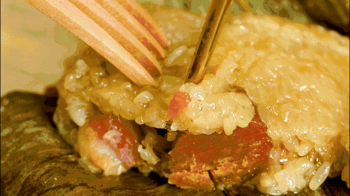 饱满的糯米被酱油染成古朴的酱红色,