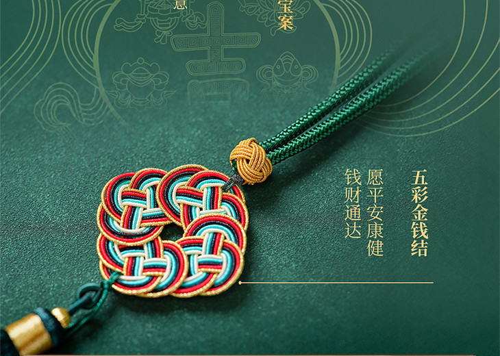 挂五彩丝编织的金钱结,