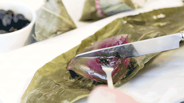 剥开青绿色的粽叶,