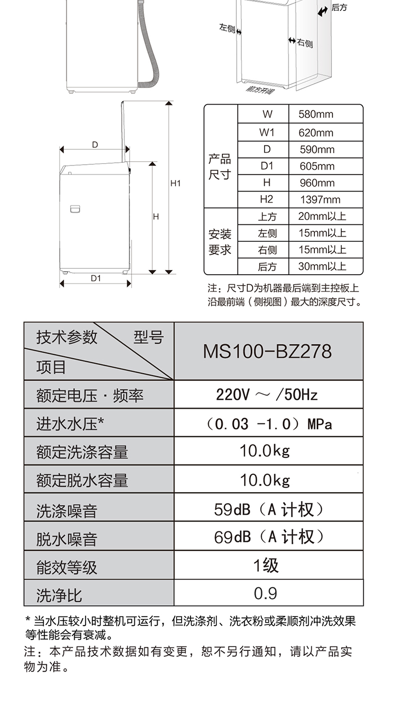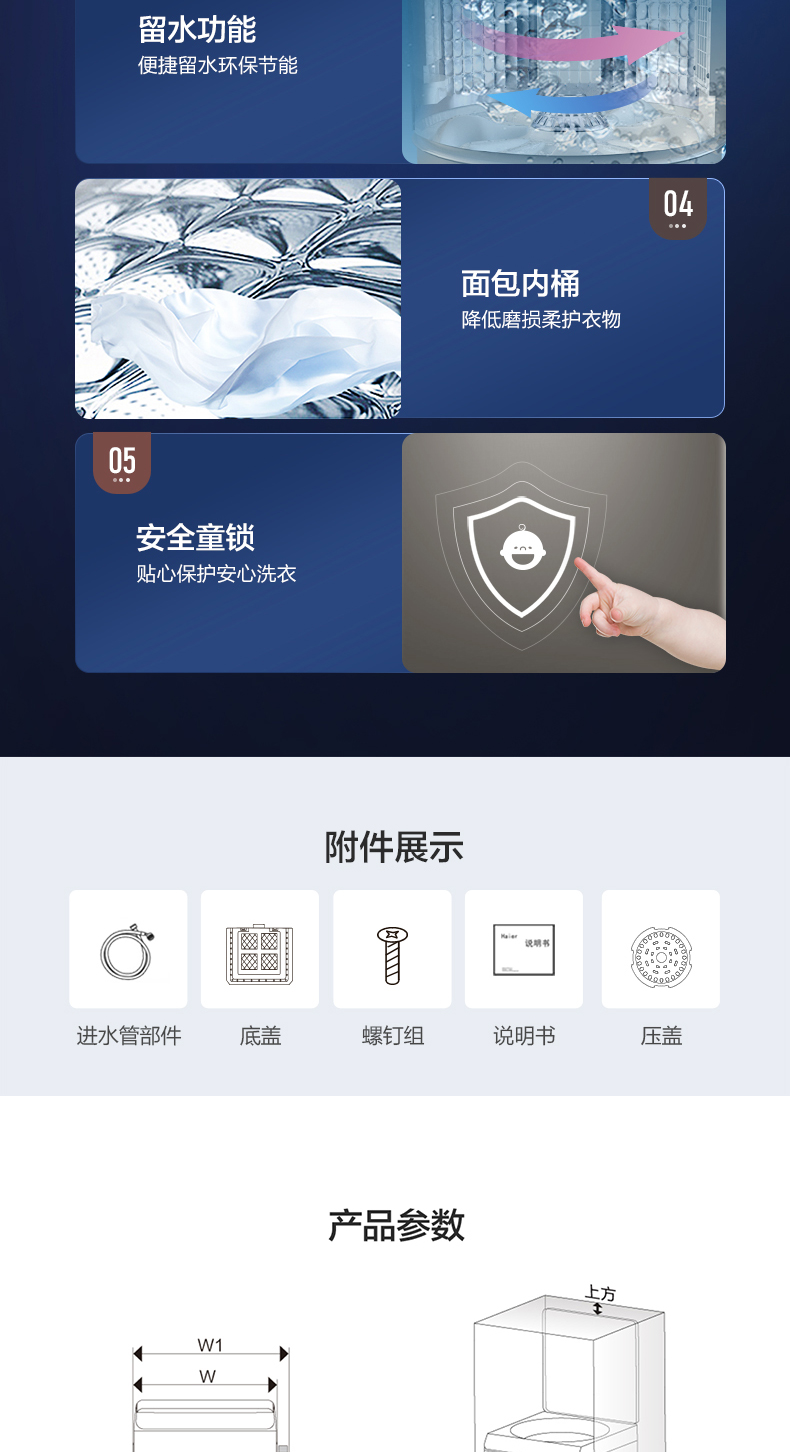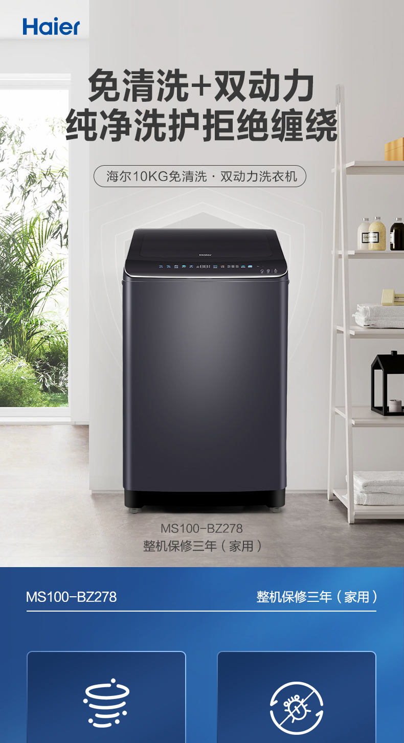 海尔10公斤免清洗双动力波轮洗衣机 MS100-BZ278