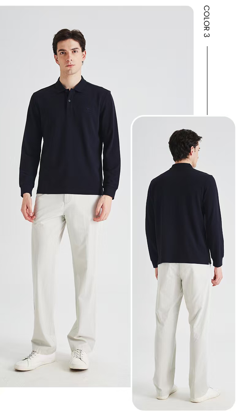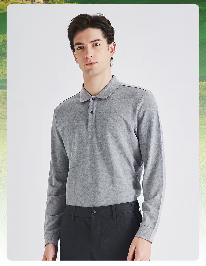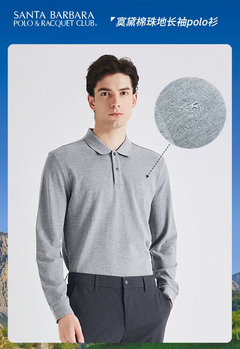 【直发】圣大保罗基础款寞黛棉珠地长袖polo衫男通勤 休闲T恤亲肤透气-PS25KT101M