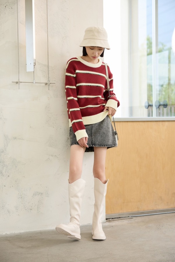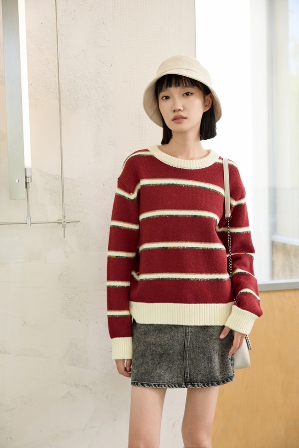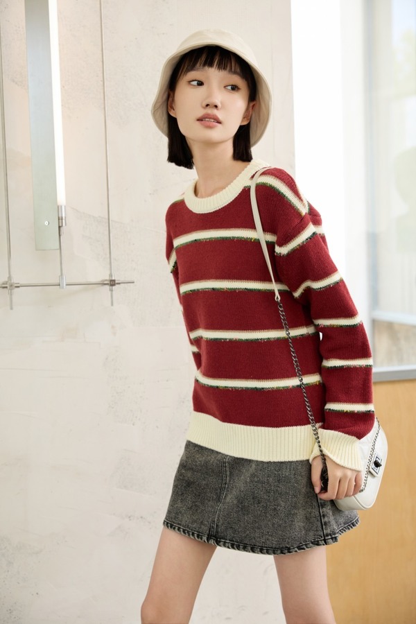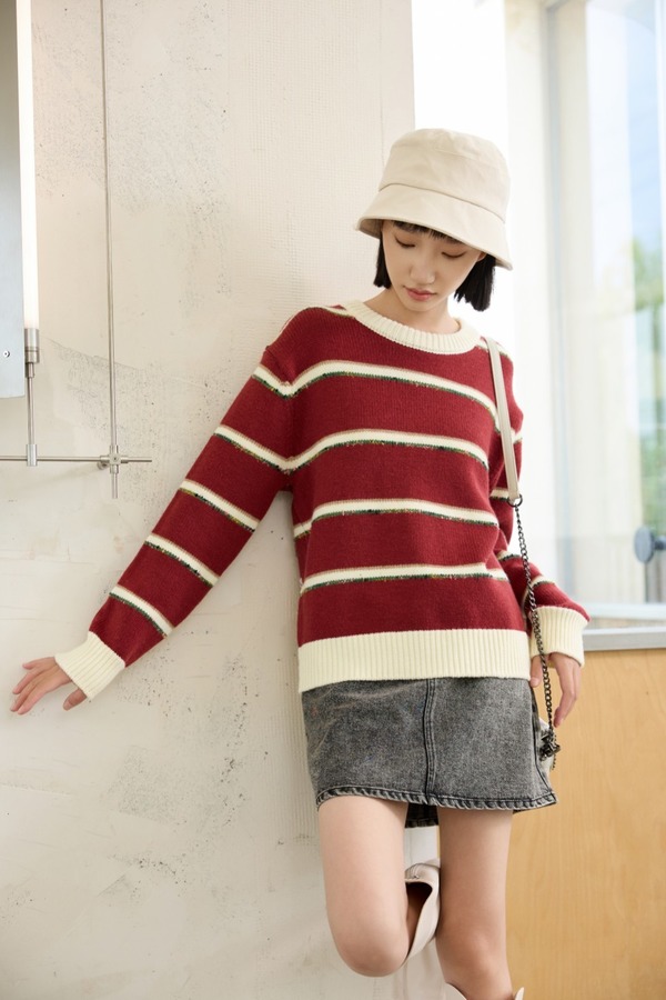 LNNNS 撞色条纹软糯套头宽松毛衣 21998
