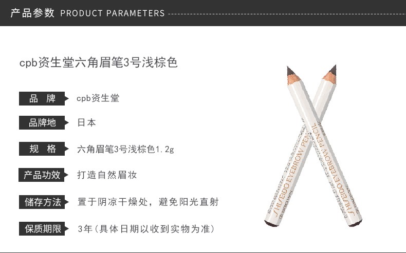 日本 Shiseido 资生堂 六角眉笔 防水防汗 3号 浅棕色 1.2g
