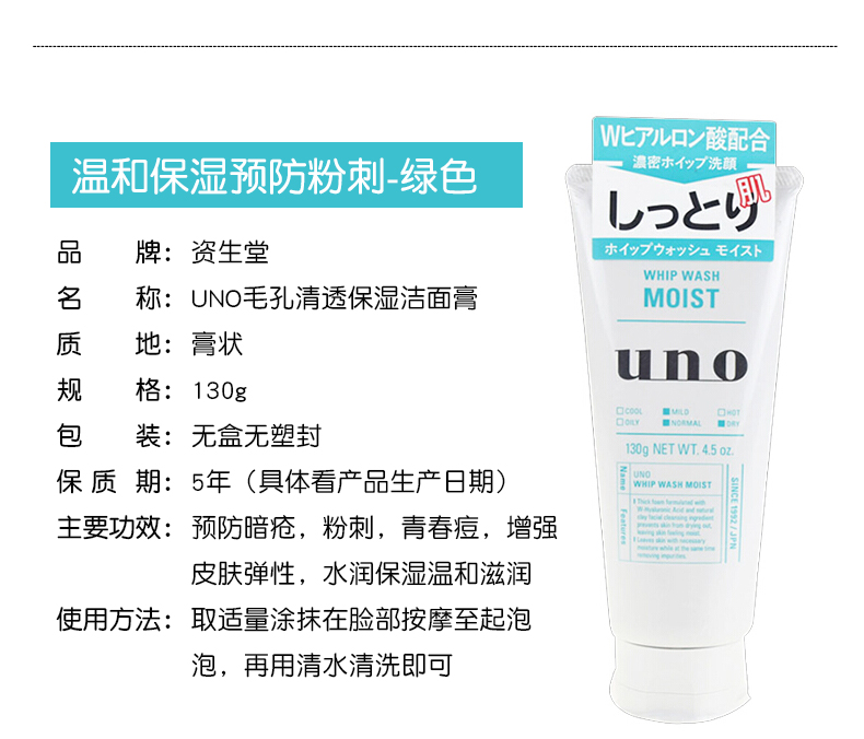【海豚美购】资生堂 UNO洗面奶 绿色 130g