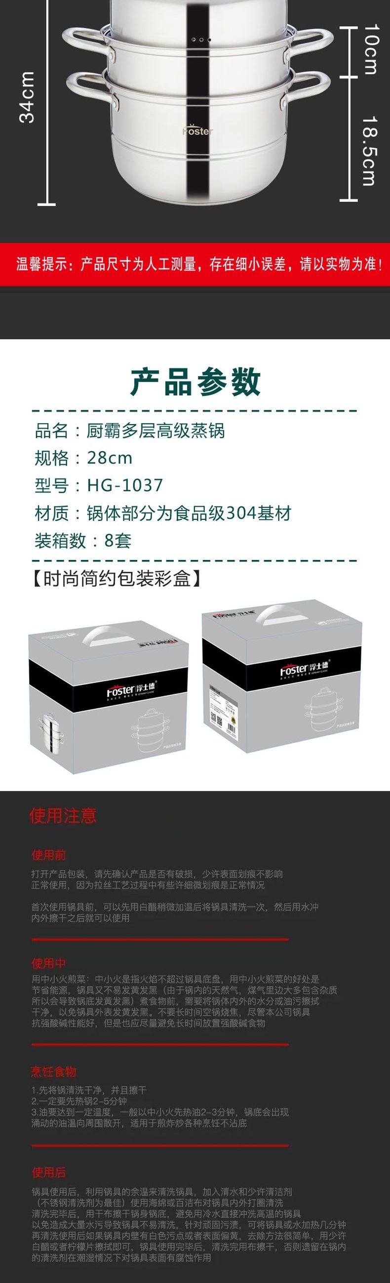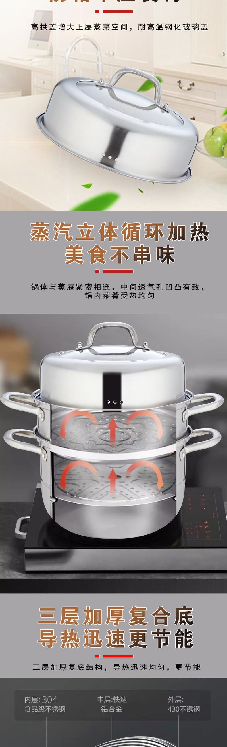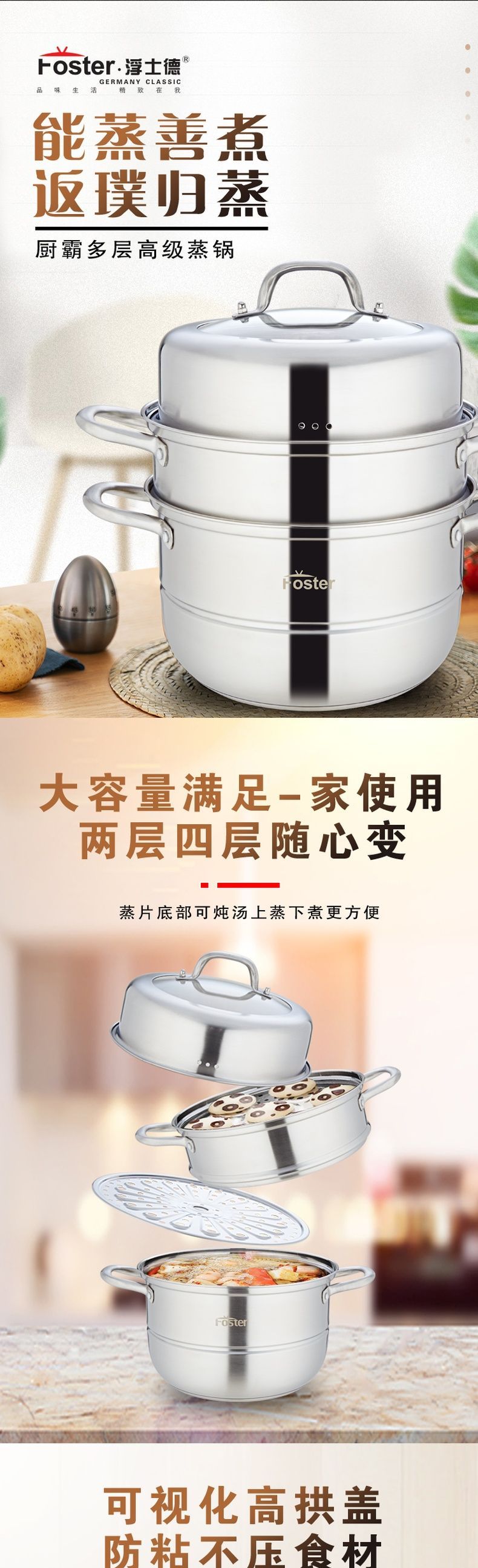浮士德 厨霸多层高级蒸锅 HG-1037 多层蒸锅家用馒头锅