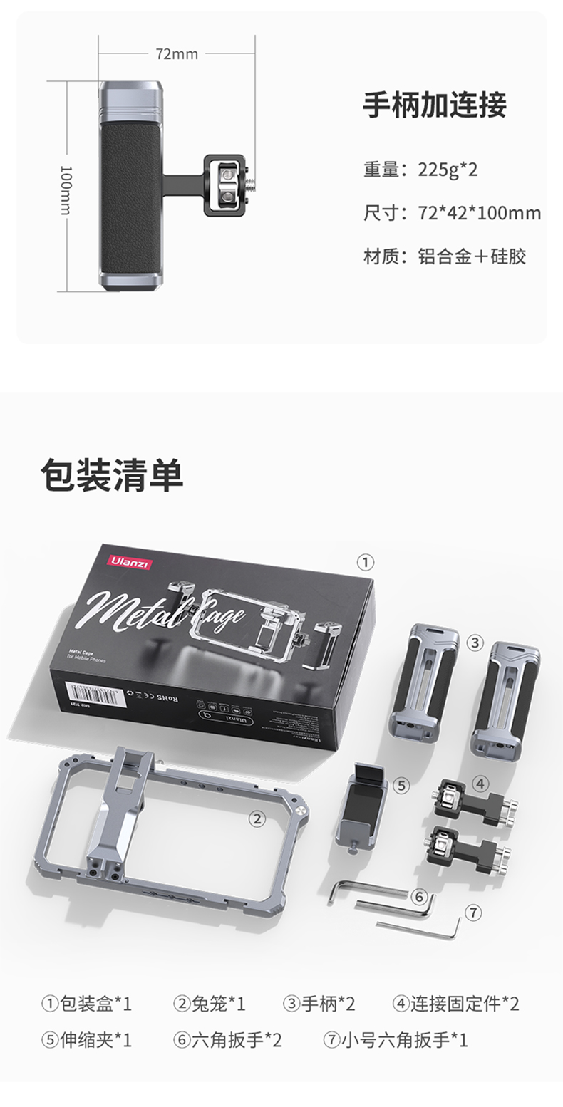 Ulanzi优篮子手机兔笼稳定器vlog拍摄支架金属摄影配件适用于iPhone14pro苹果13手柄12保护套华为安卓通用