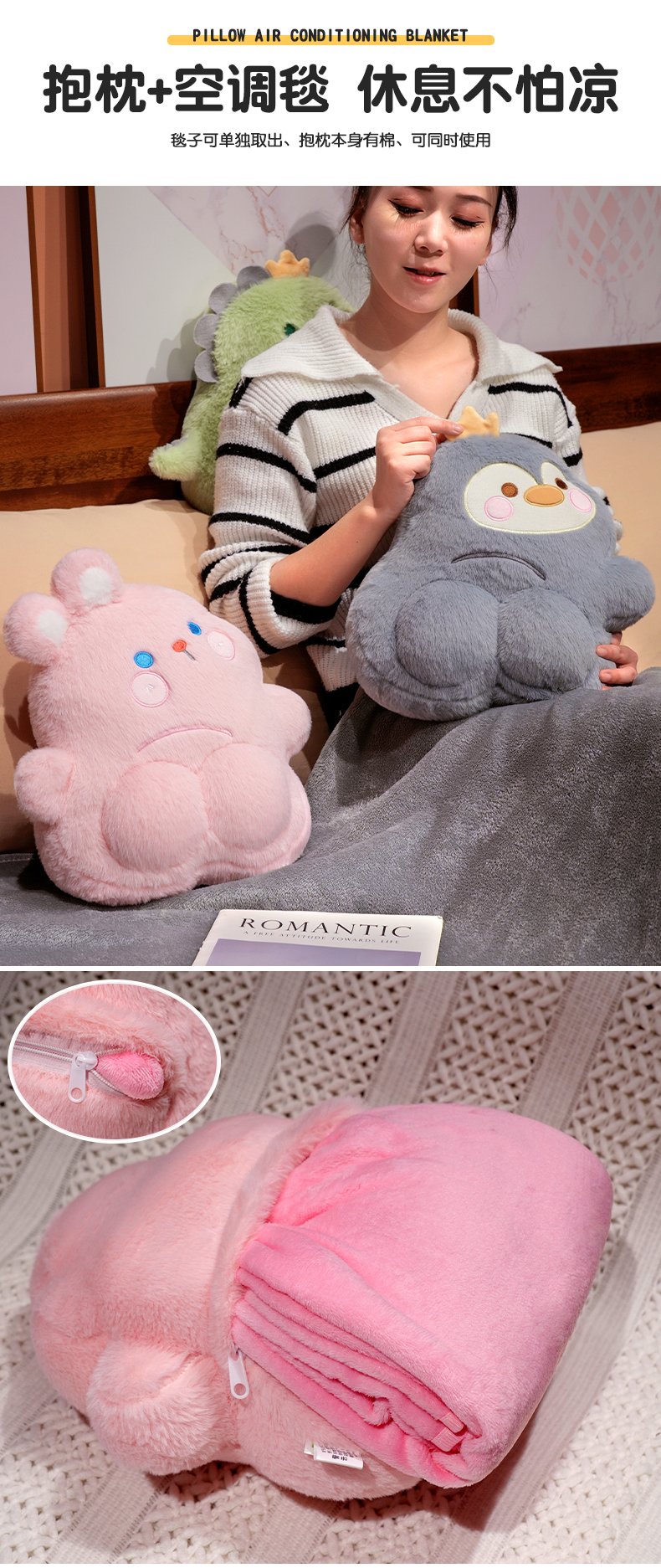 自然醒PP系列二合一抱枕毯两用办公室折叠午睡枕头毯子二合一沙发汽车靠枕QYL