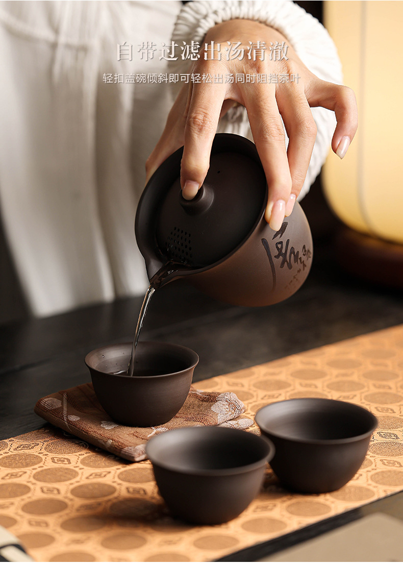 「一壶三杯套装!数款可选」户外茶具套装便携式紫砂快客杯 轻奢旅行泡茶壶送礼伴手礼餐饮用具