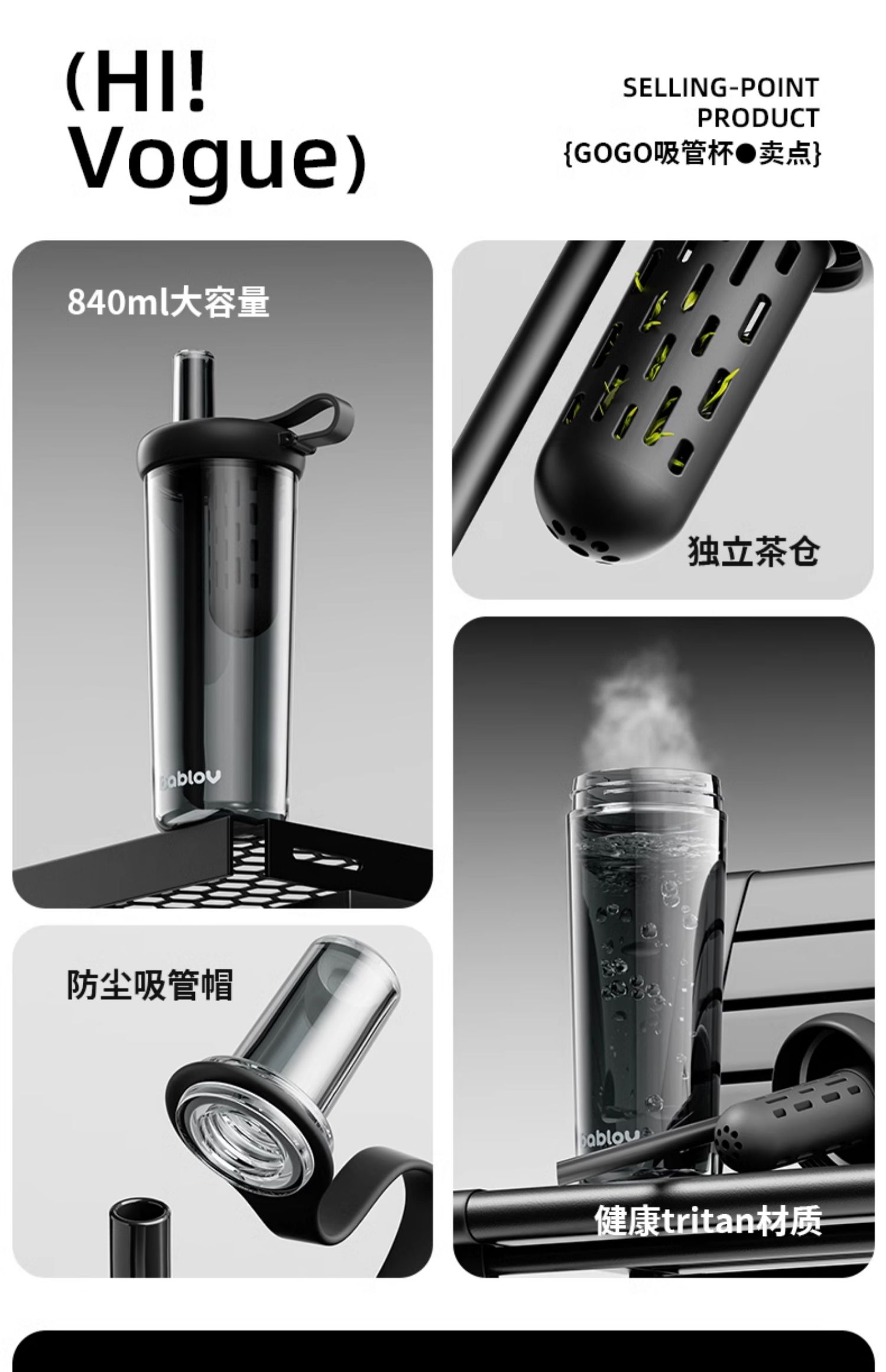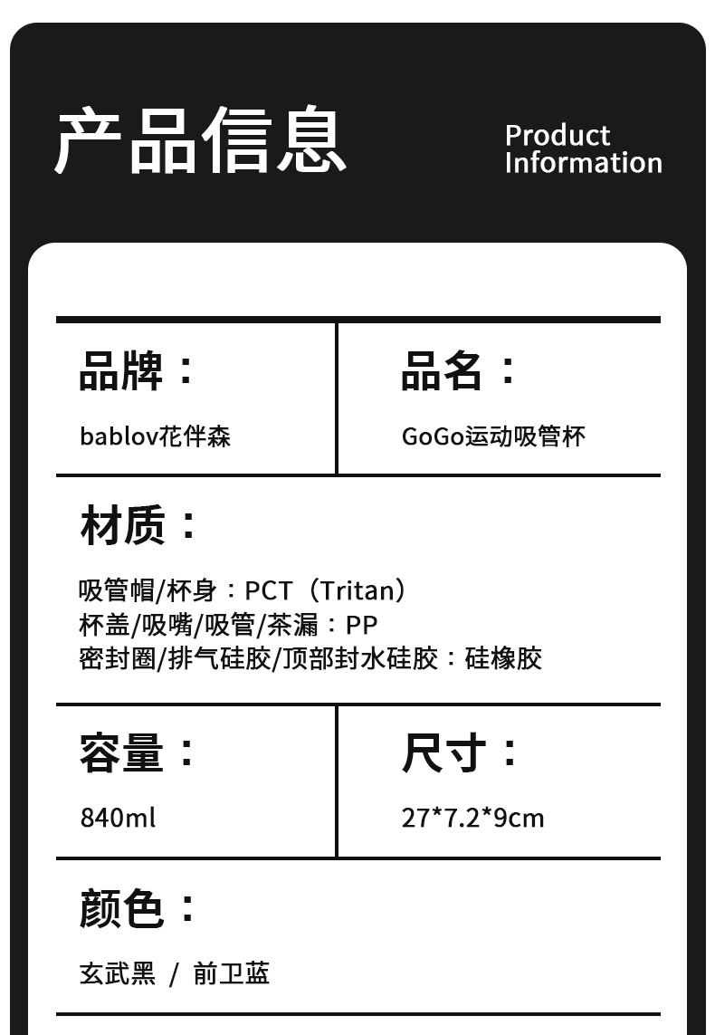 【困妈周年庆】bablov吸管水杯男生车载大容量夏季便携随行学生高颜值塑料杯子