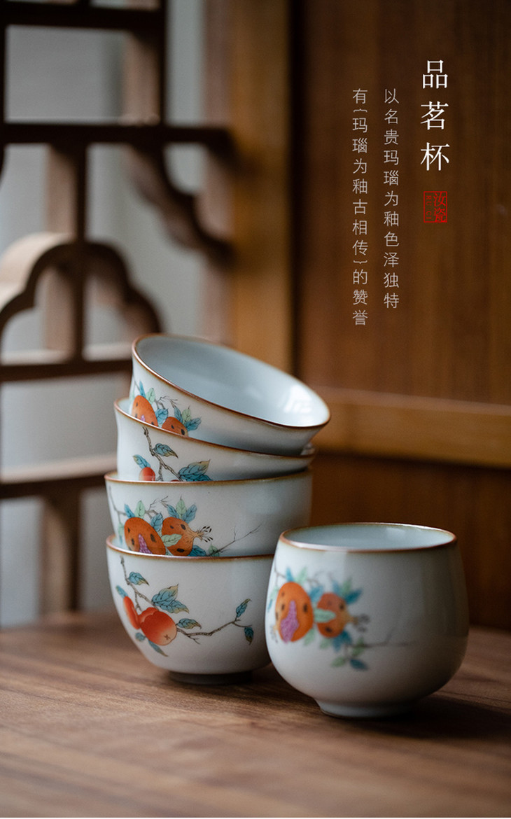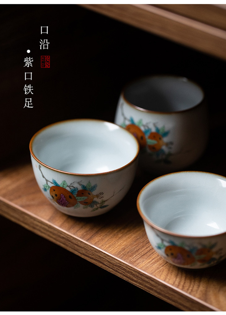 柿子石榴月白汝窑茶杯个人杯主人杯单杯品茗杯开片可养陶瓷茶具