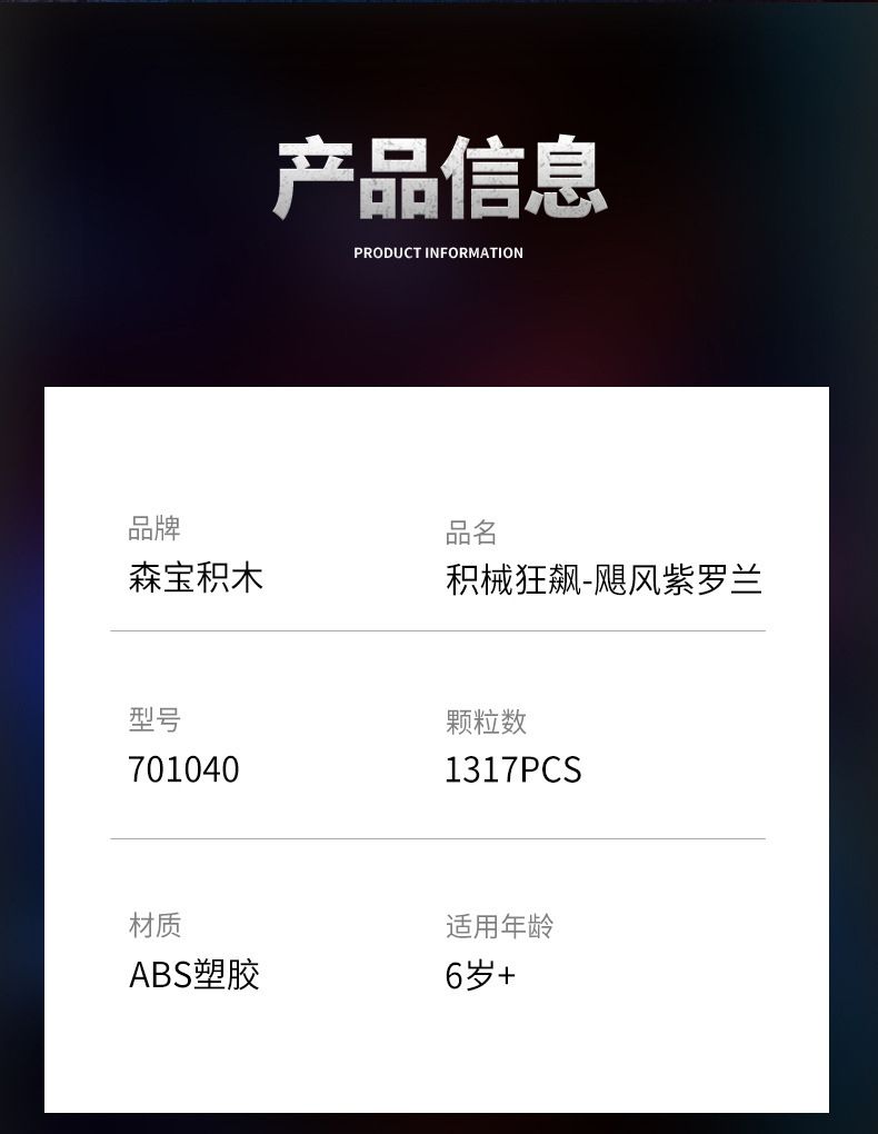 森宝 701040机械狂飙-改电飓风紫罗兰1:14