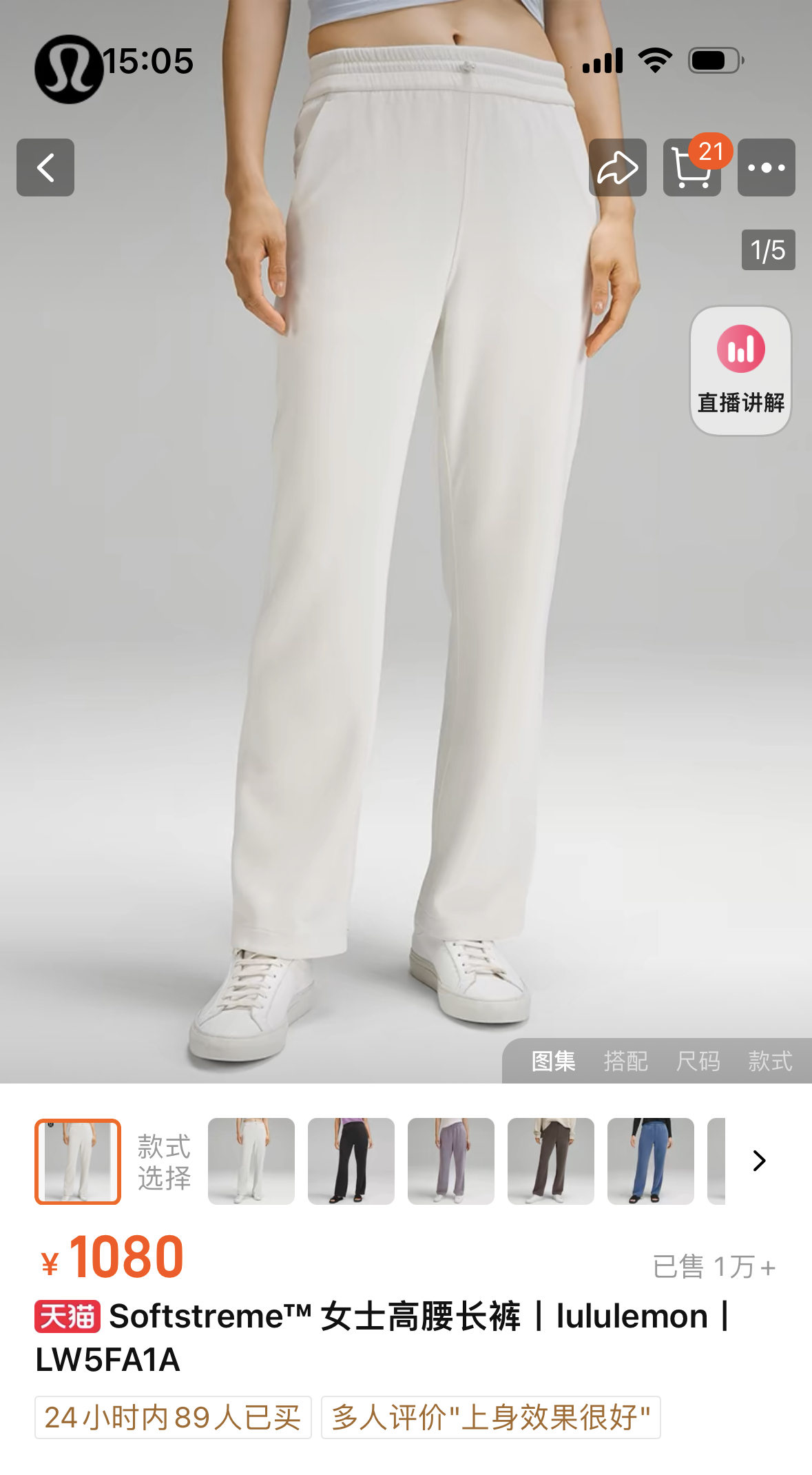 LULU家女士高腰雾面感砂洗弹力长裤 LW5FA1A 显瘦遮肉百搭直筒阔腿裤