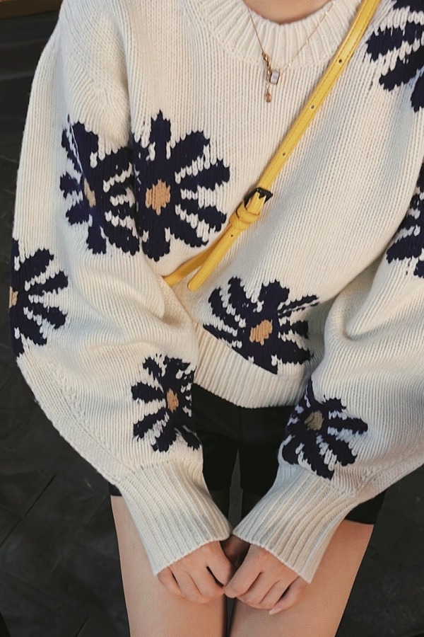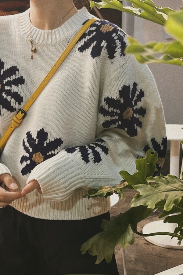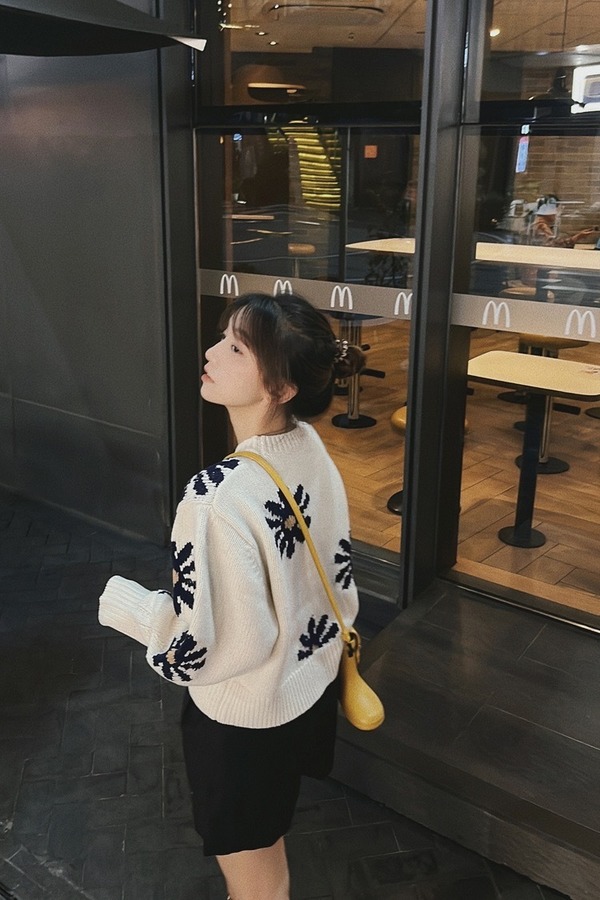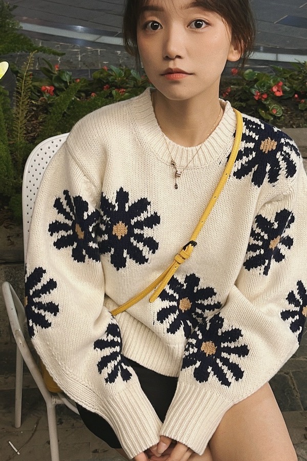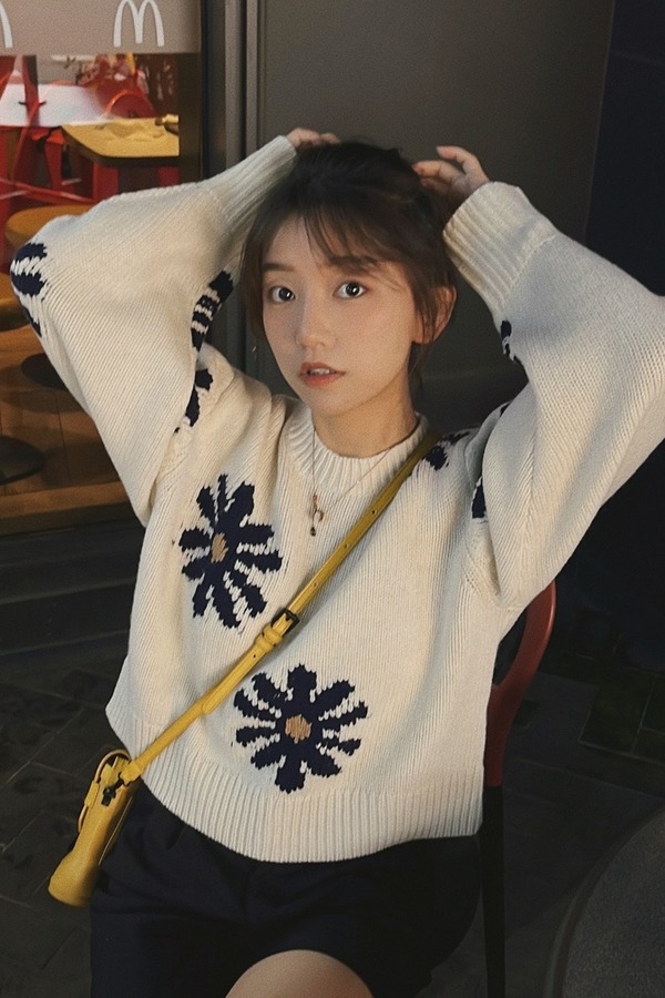 LNNNS 法式短款雏菊图案针织上衣 17602