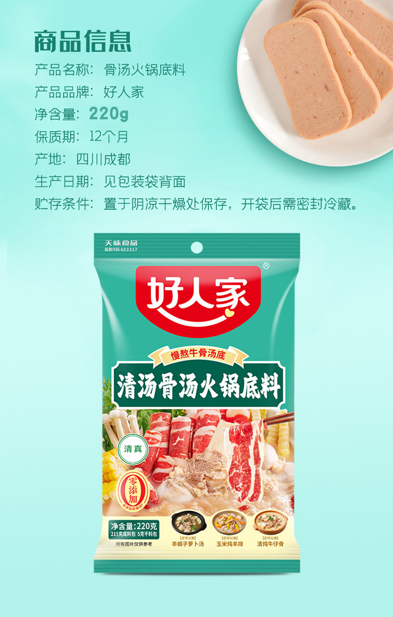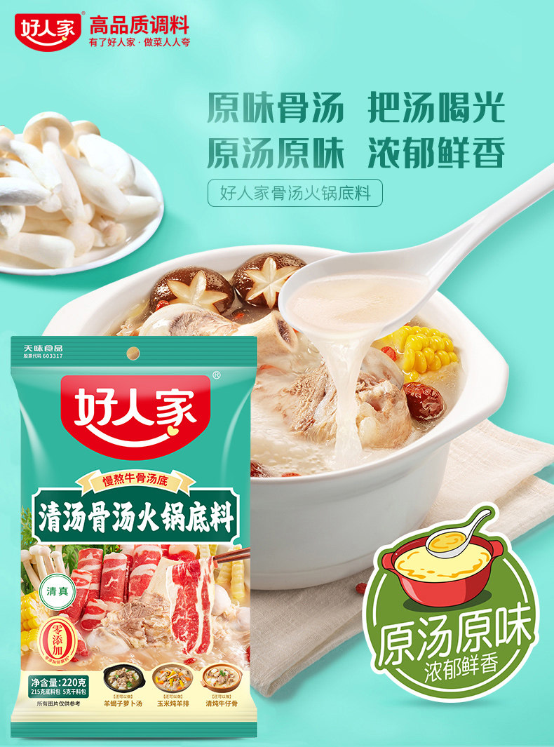 好人家清汤骨汤火锅底料220g