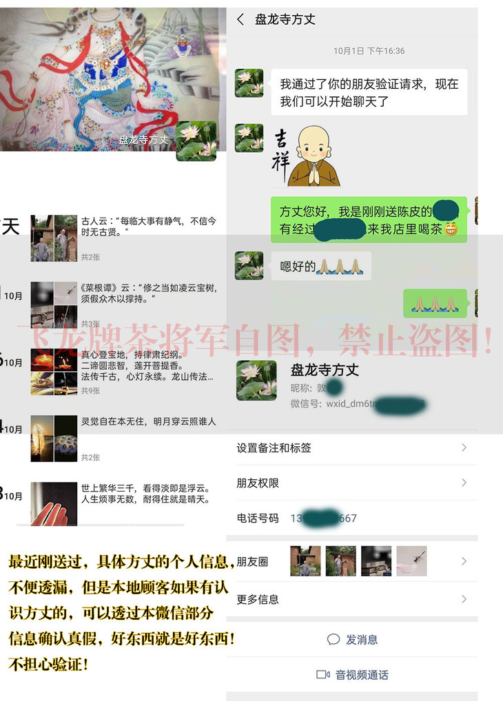 然后,本款陈皮,昆明滇池东岸香火最旺盛的盘龙寺主持专供的唯一品种老陈皮,其它各种类,价格,他一喝都不喜欢,这是唯一一款,点名要求喝的一款!防止大家不信,我放几张微信截图,昆明本地的人可以证实。