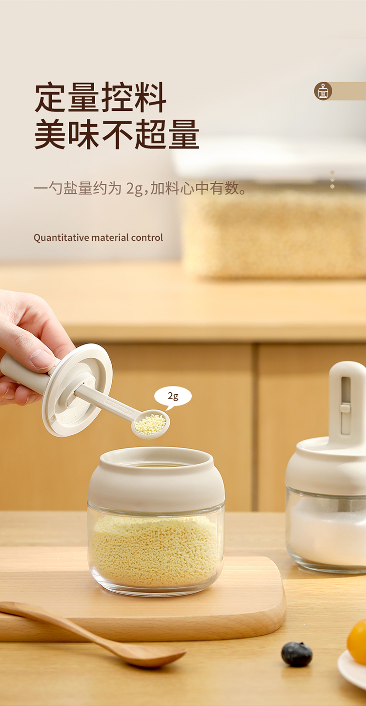 FaSoLa伸缩调料瓶勺盖一体厨房家用调料收纳盒盐味精密封防潮套装