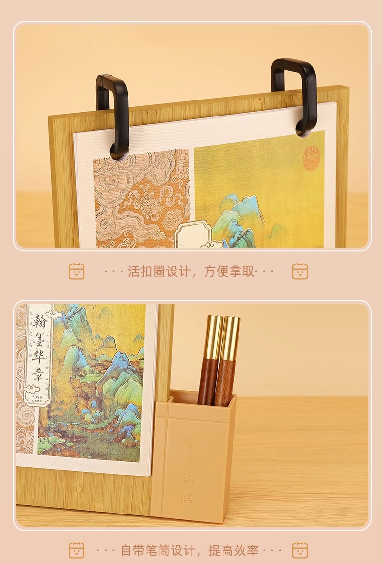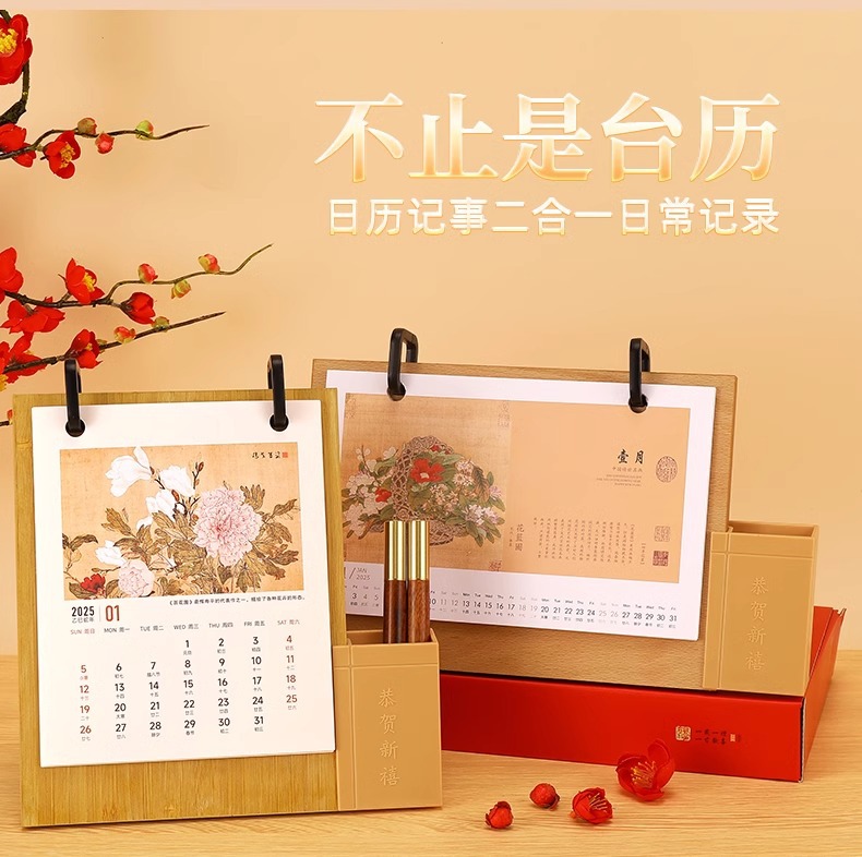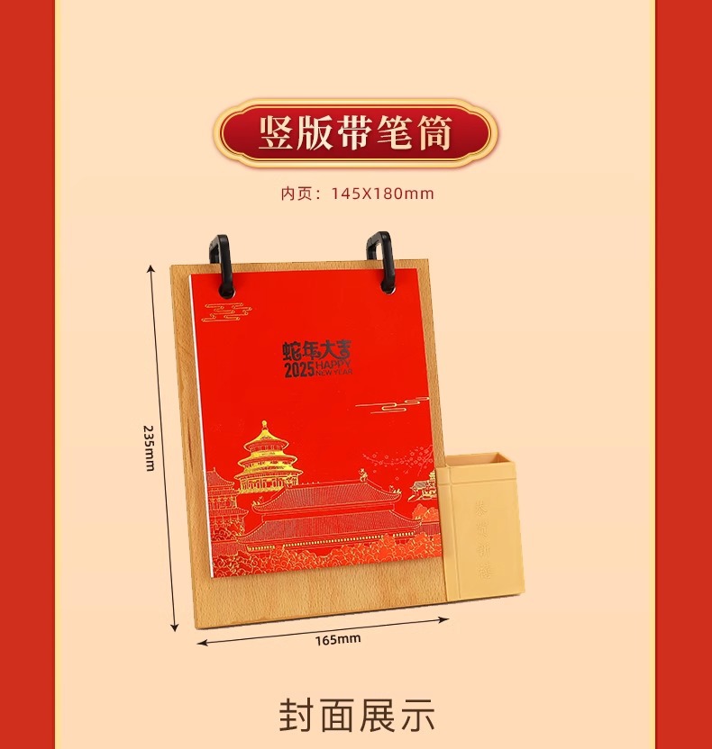 【2025年木质台历】创意简约桌面摆件 日历计划本 蛇年皮质周历