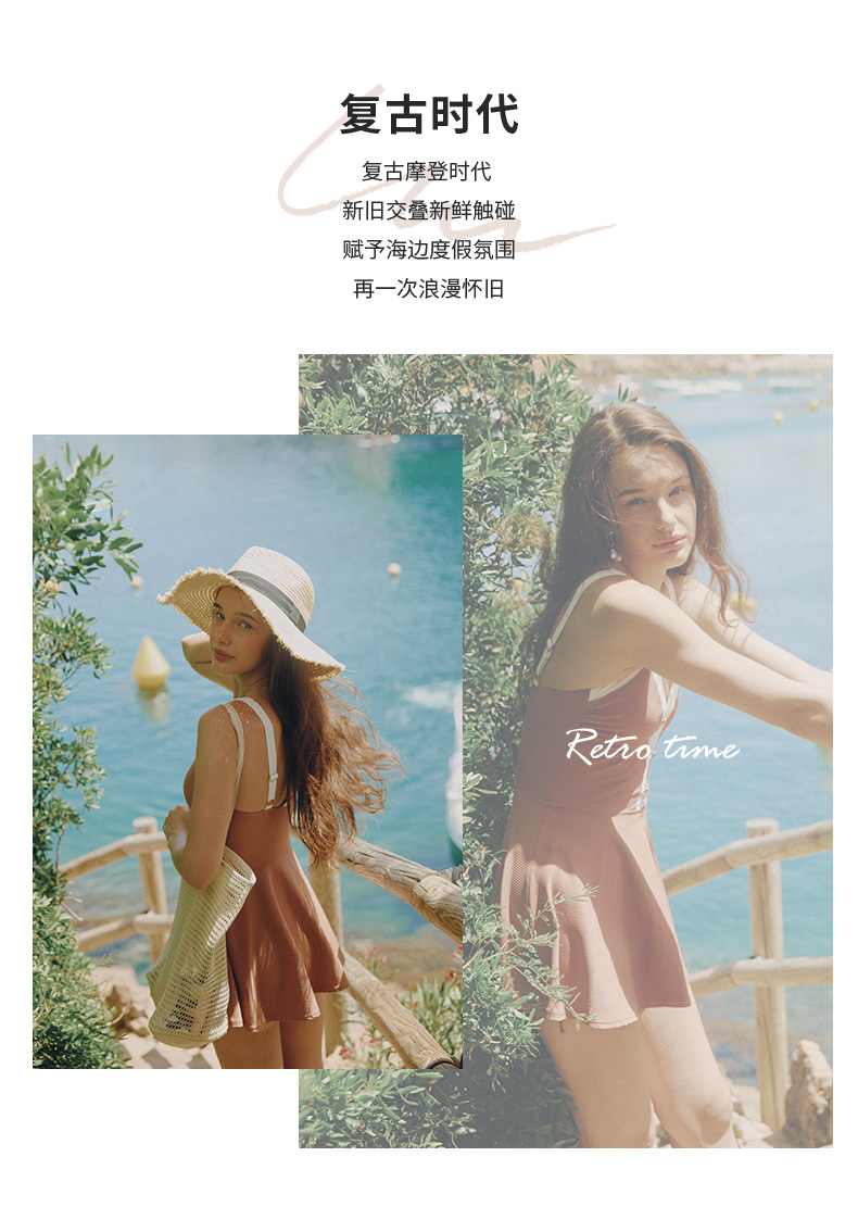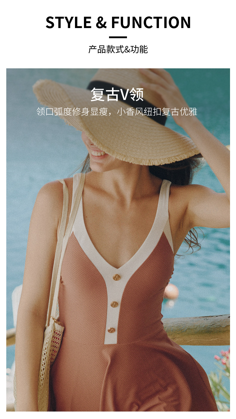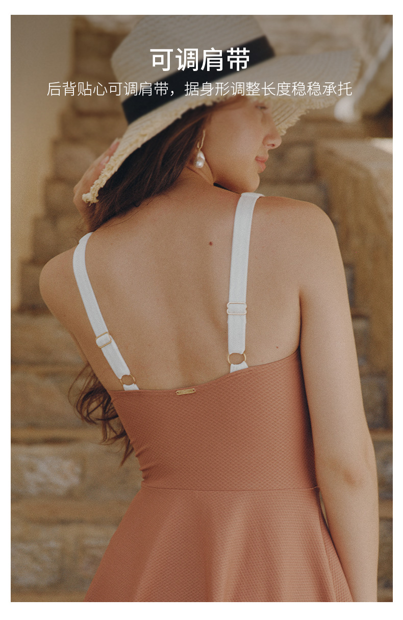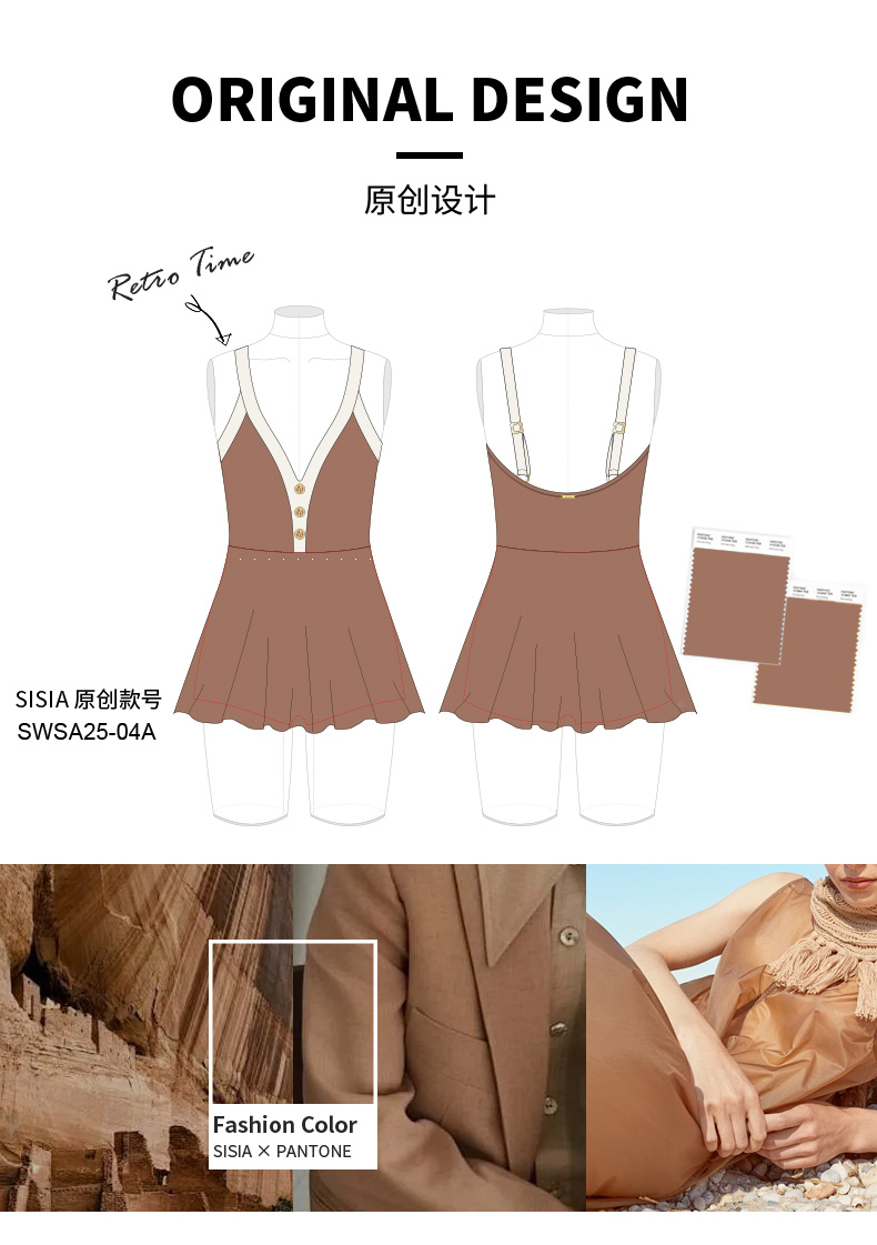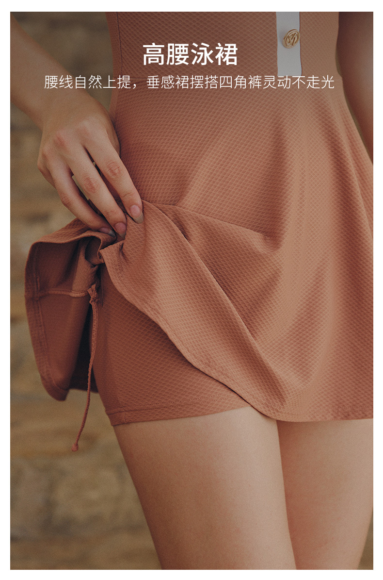 sisia新款泳衣女高级感连体裙式保守遮肚显瘦海边度假泡温泉SWSA25-04A