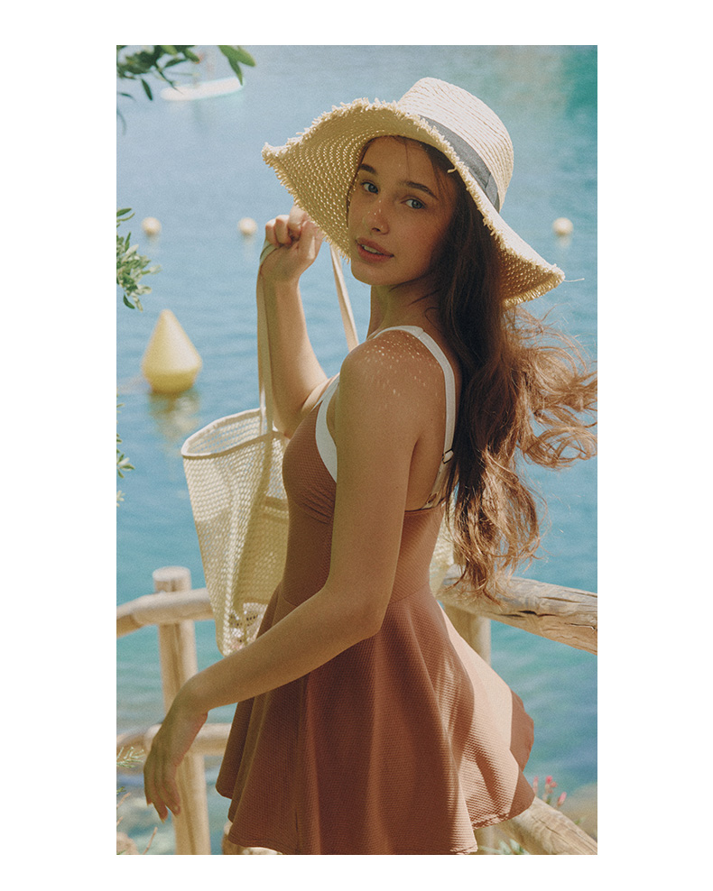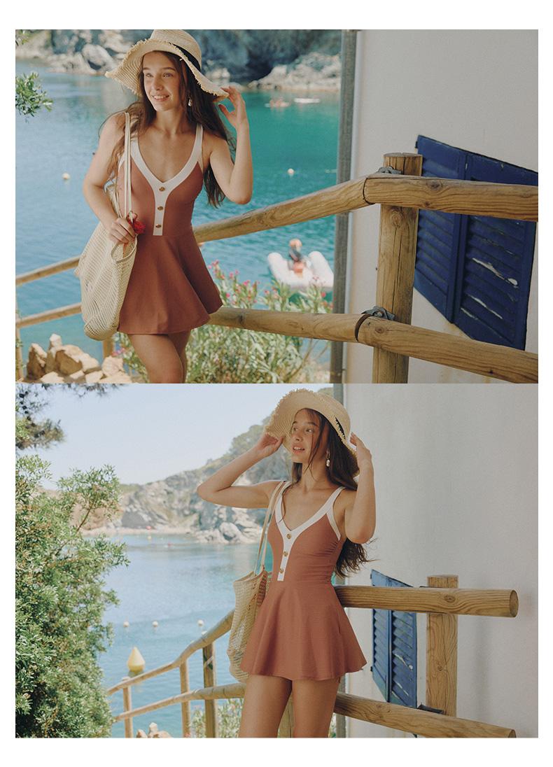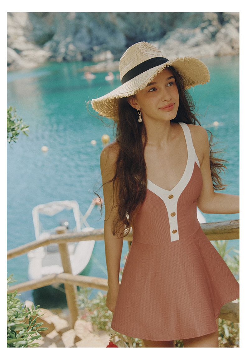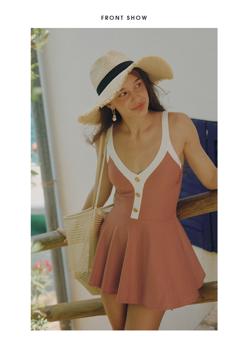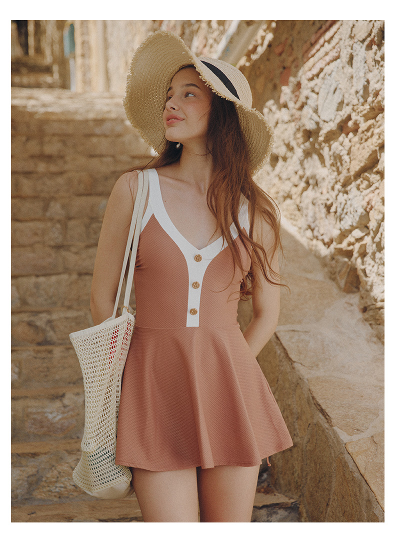 sisia新款泳衣女高级感连体裙式保守遮肚显瘦海边度假泡温泉SWSA25-04A