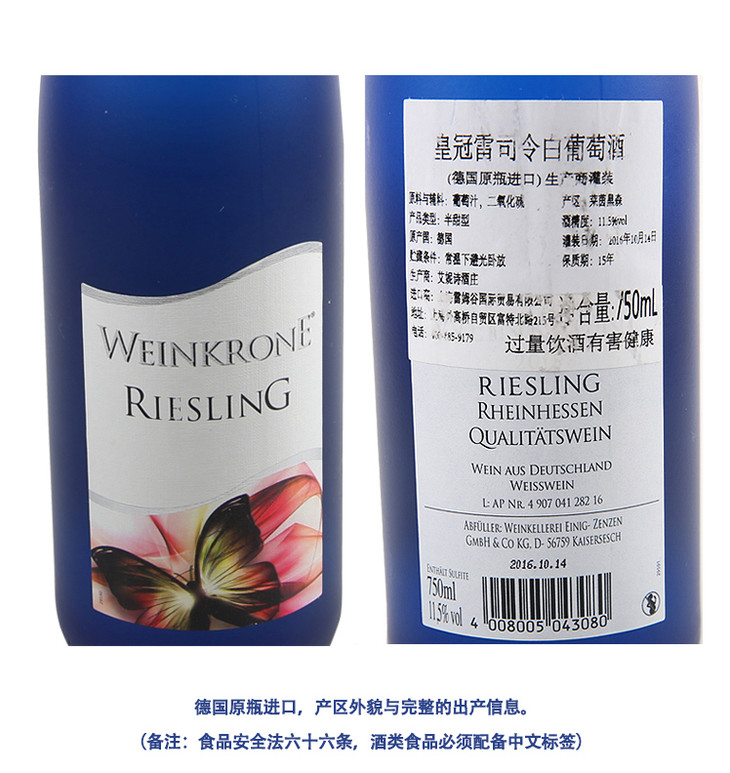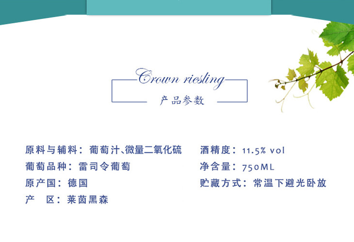 皇冠雷司令2瓶装 德国进口riesling半甜白葡萄酒750ml[福利品]