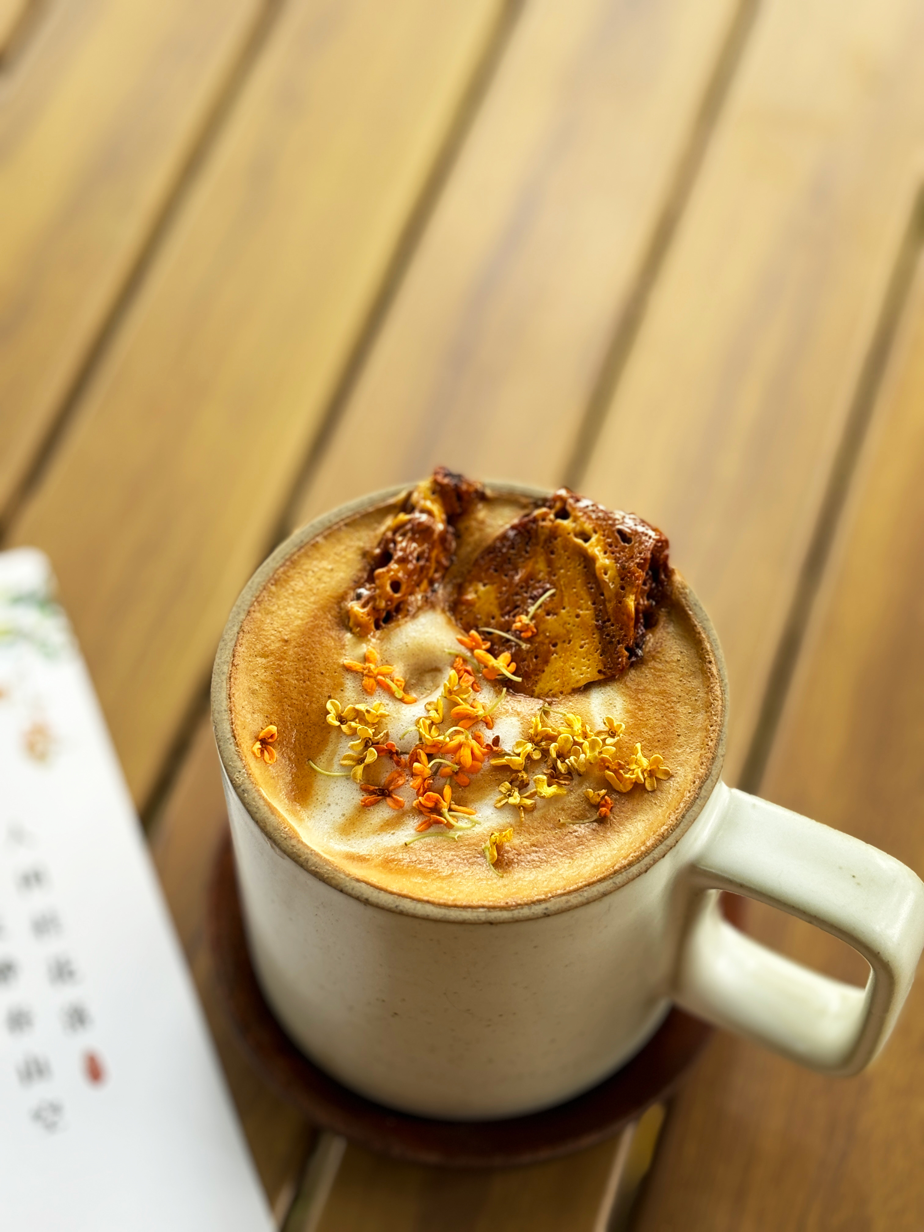 除此之外,我推荐:将桂花和咖啡一起磨粉,萃取咖啡液,加鲜奶,再撒上今年的新桂,get一杯桂香扑鼻的拿铁;另外还有桂花糕,桂花米酿、桂花酒等等各种食谱;