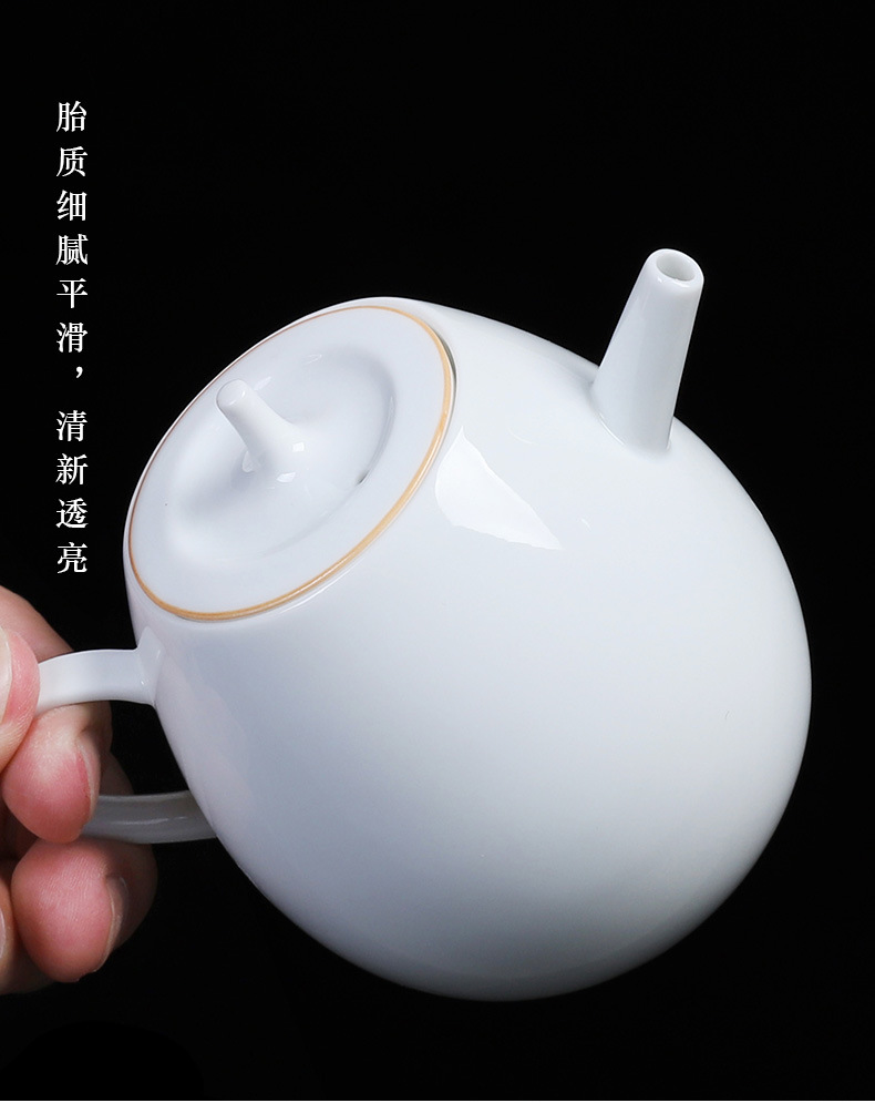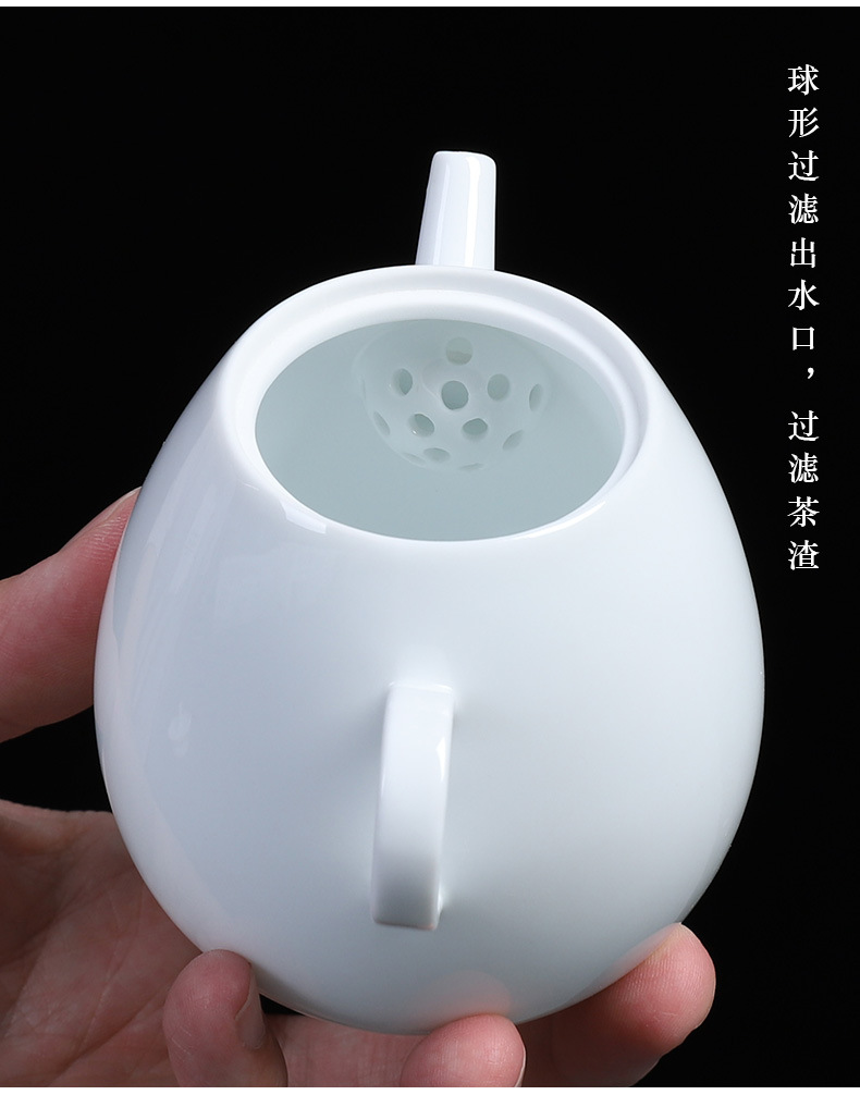 德化甜白瓷泡茶壶家用功夫茶具迷你简约带过滤茶道单壶陶瓷圆壶