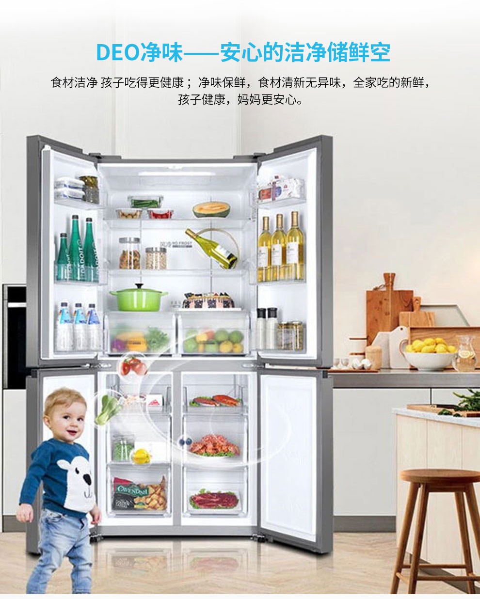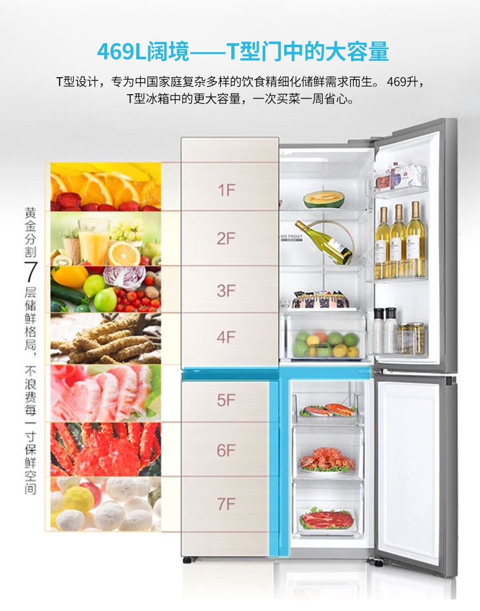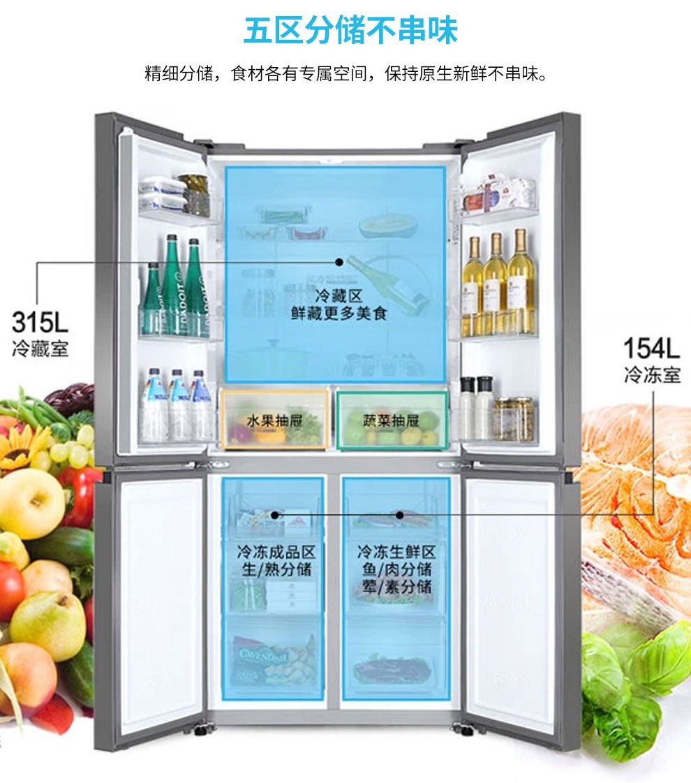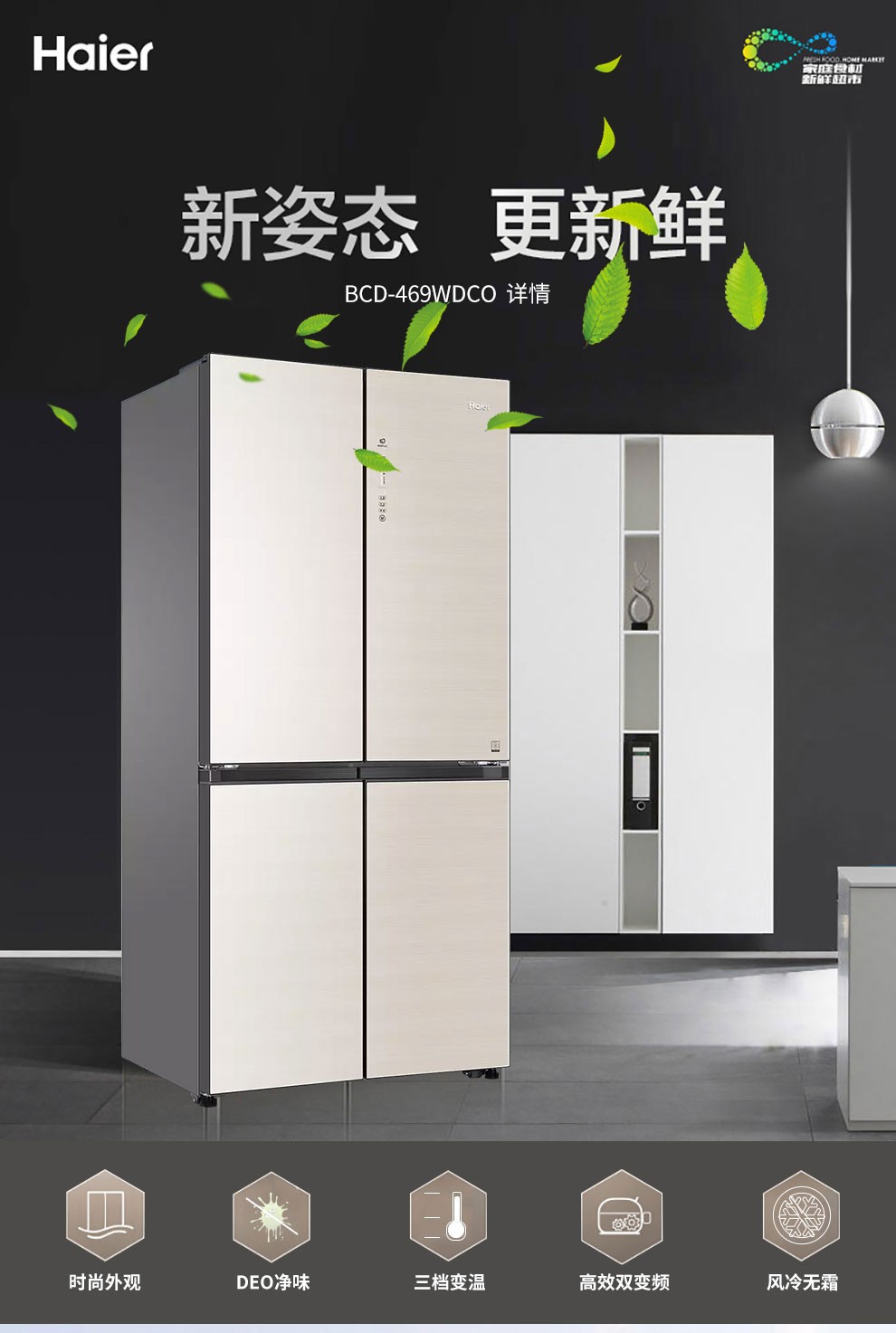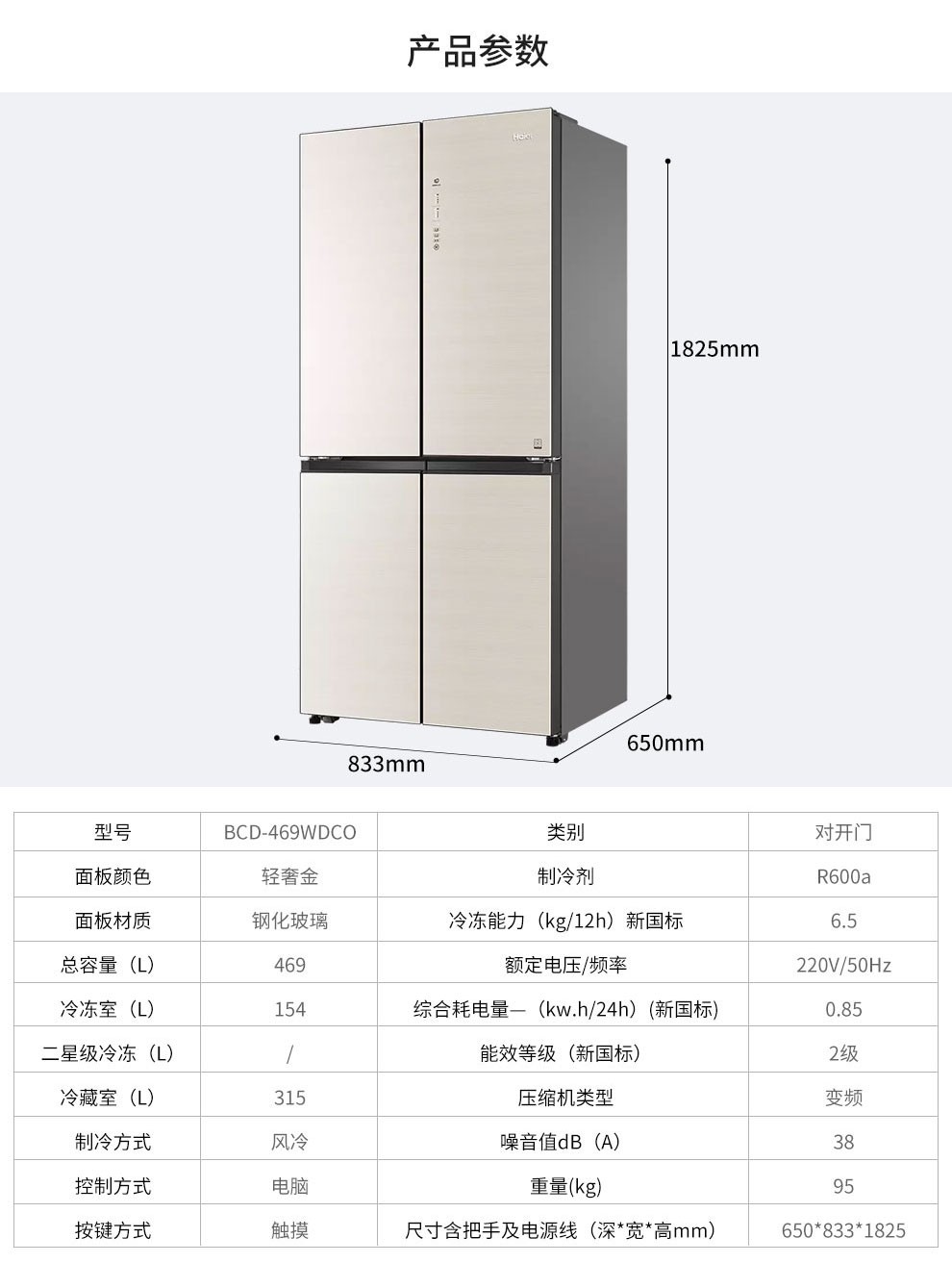 海尔469升风冷变频十字对开门冰箱BCD-469WDCO