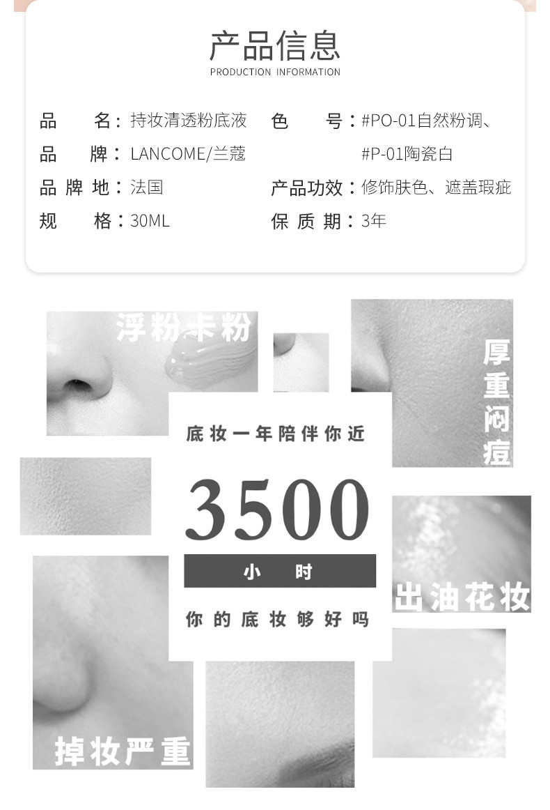 LANCOME兰蔻 持妆清透粉底液 30ML 法国