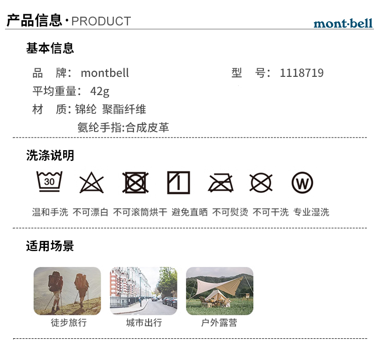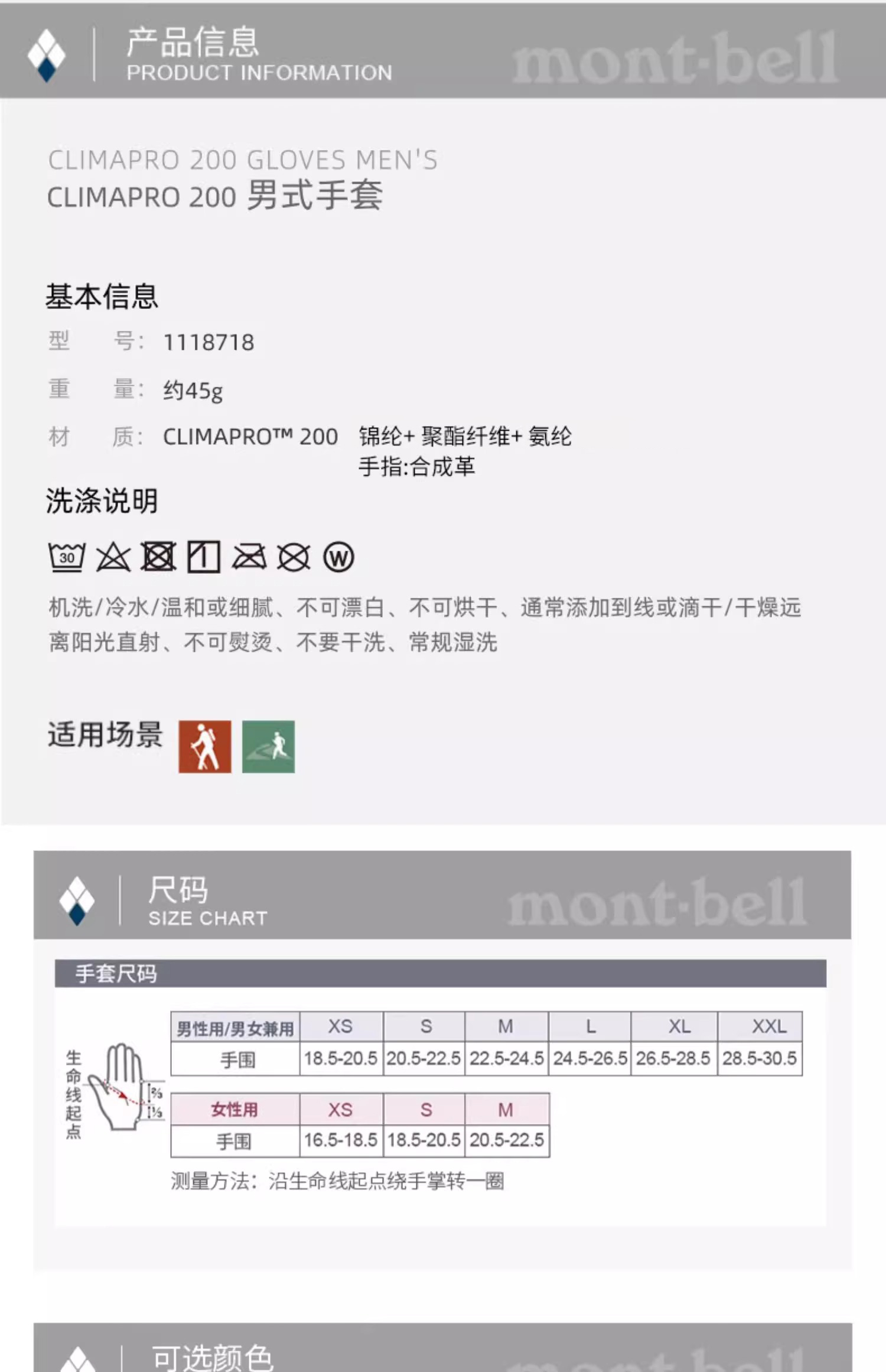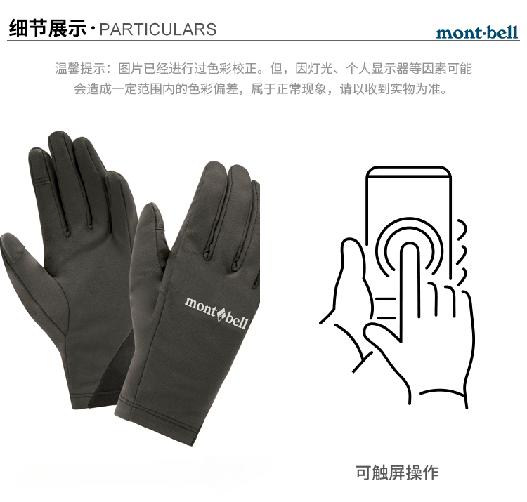 MONTBELL男女户外休闲保暖加绒中厚款手套可触屏1118719/1118718