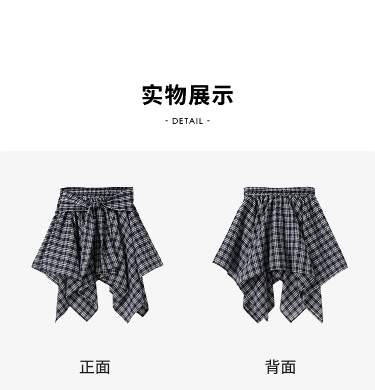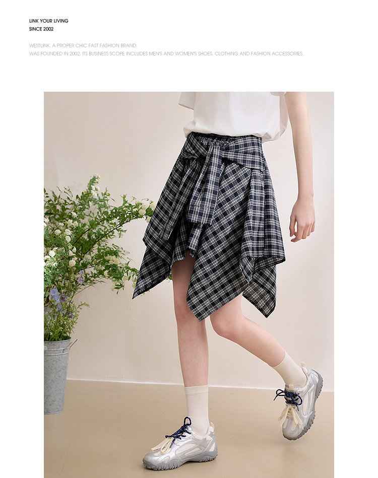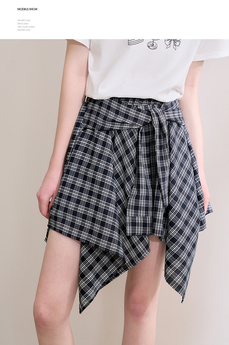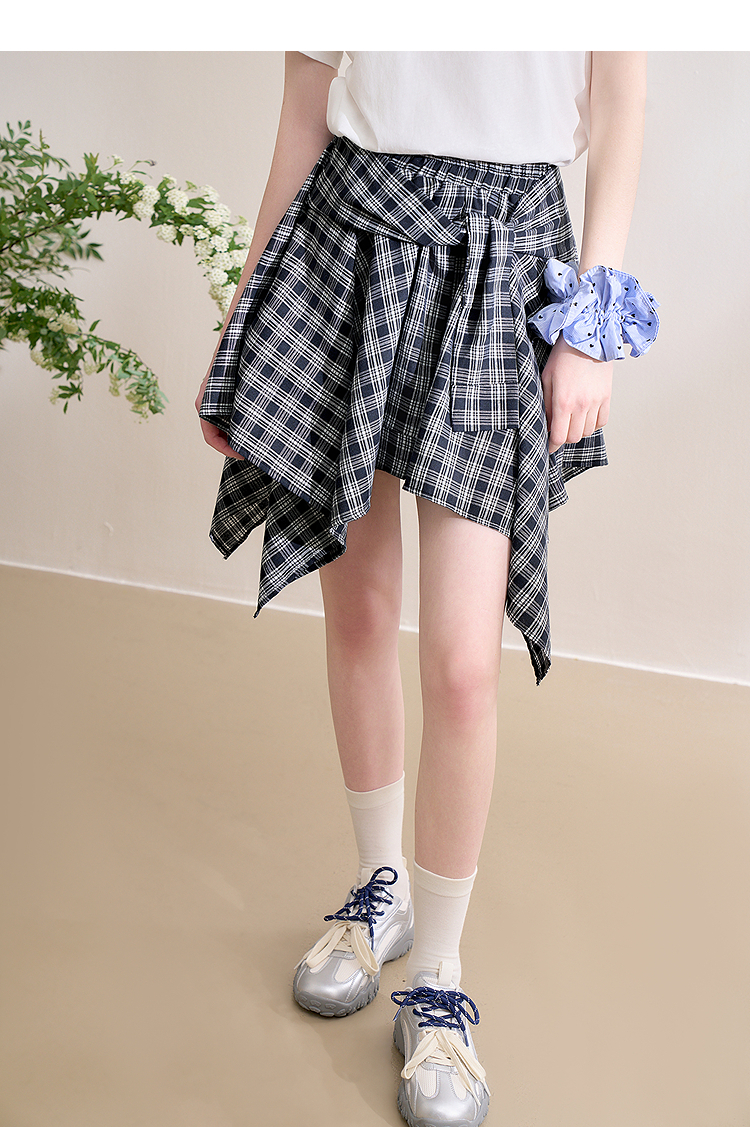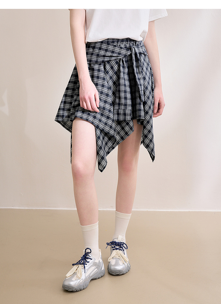 【限时秒杀】西遇格纹半身裙女夏季新款不规则下摆绑带设计感高腰短裙D0050450