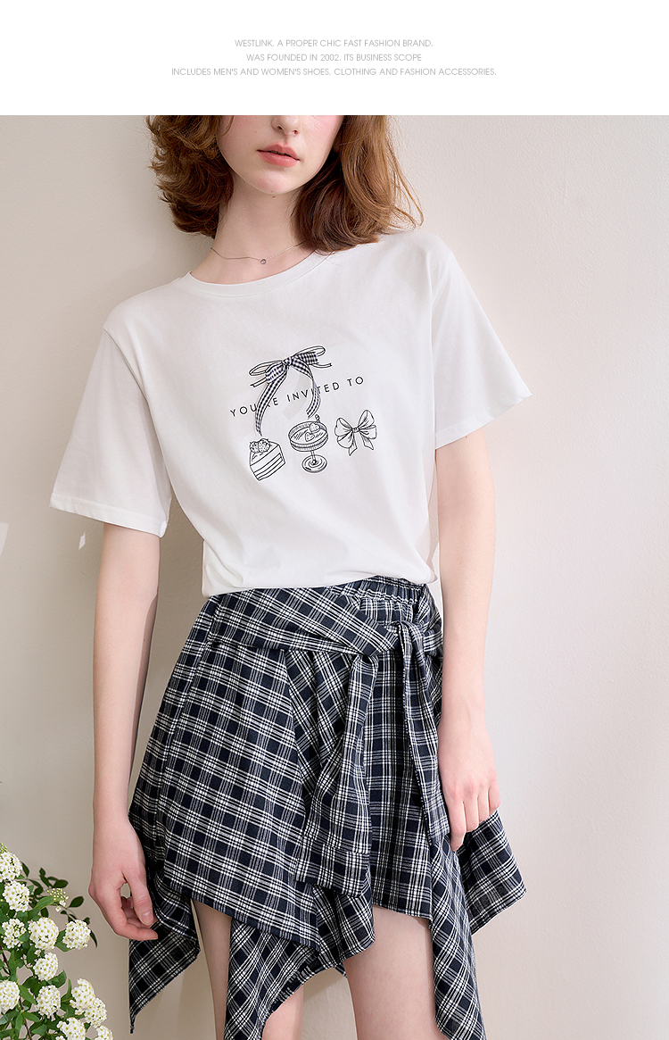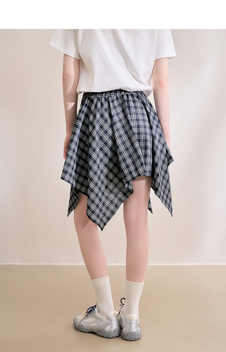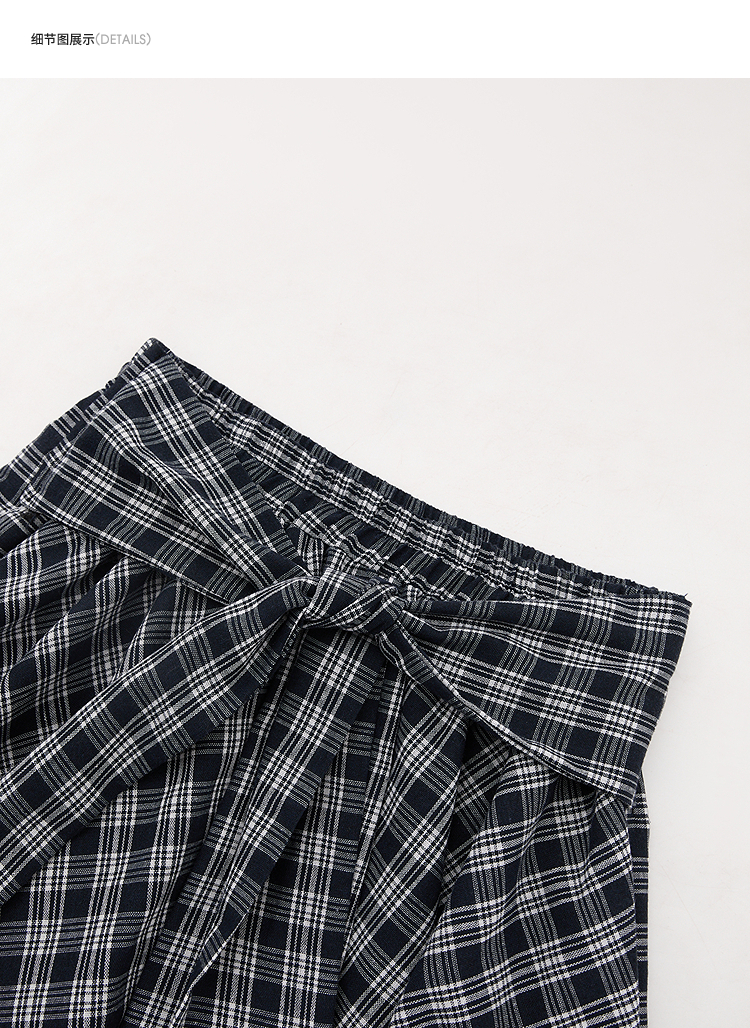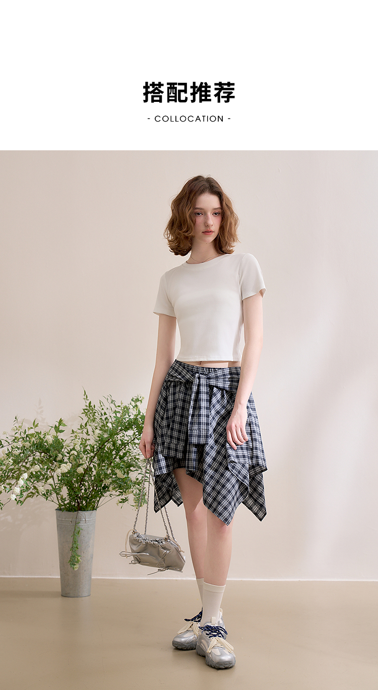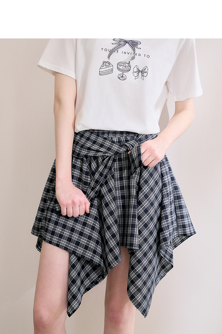 【限时秒杀】西遇格纹半身裙女夏季新款不规则下摆绑带设计感高腰短裙D0050450