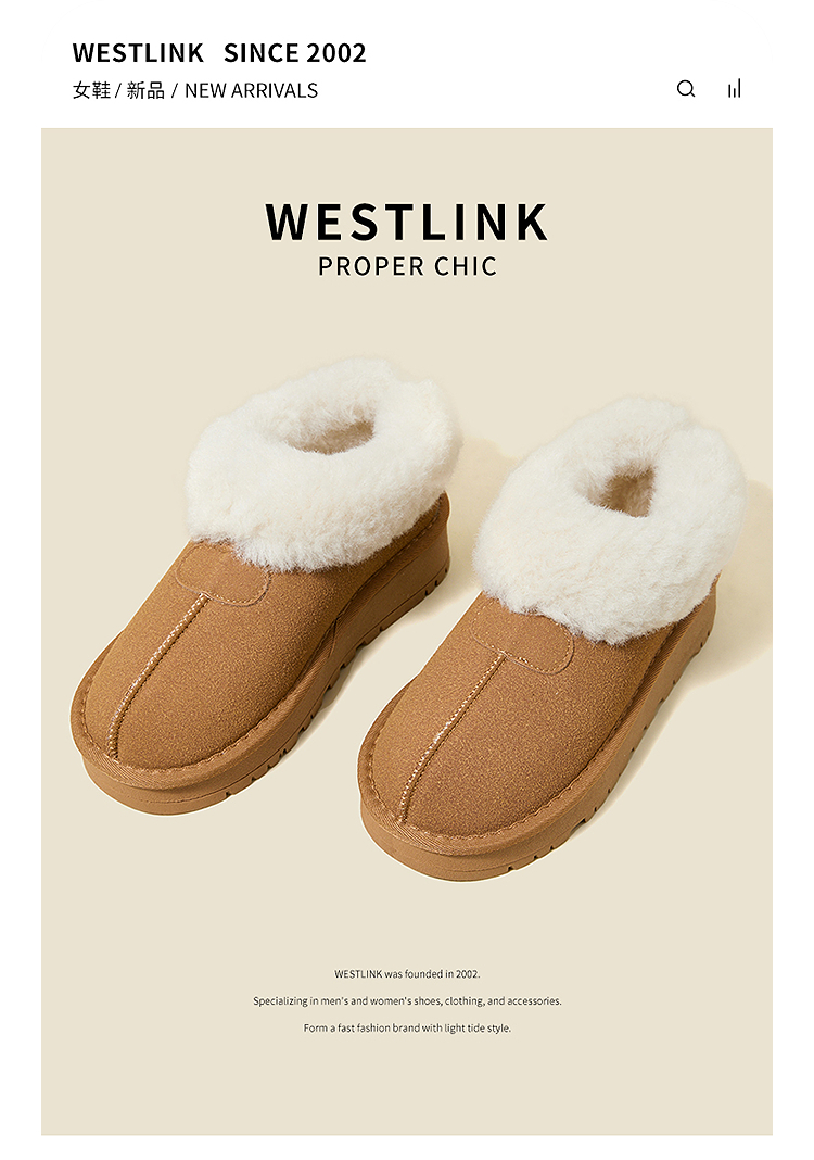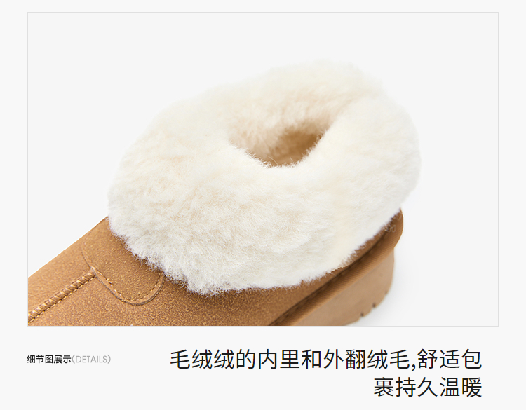 西遇毛毛雪地靴女新款冬季低帮舒适保暖加绒棉鞋外穿厚底女鞋Y0057325