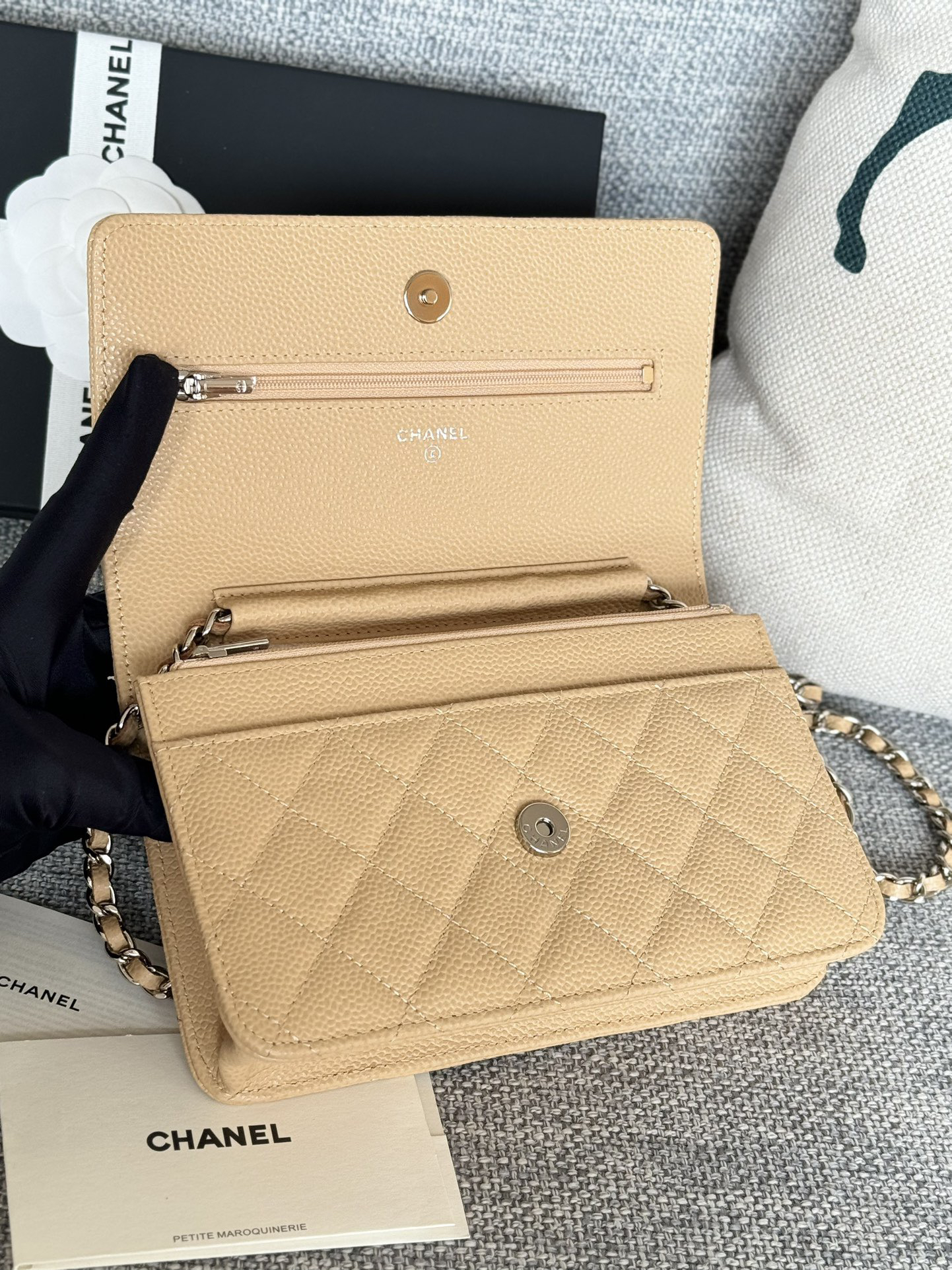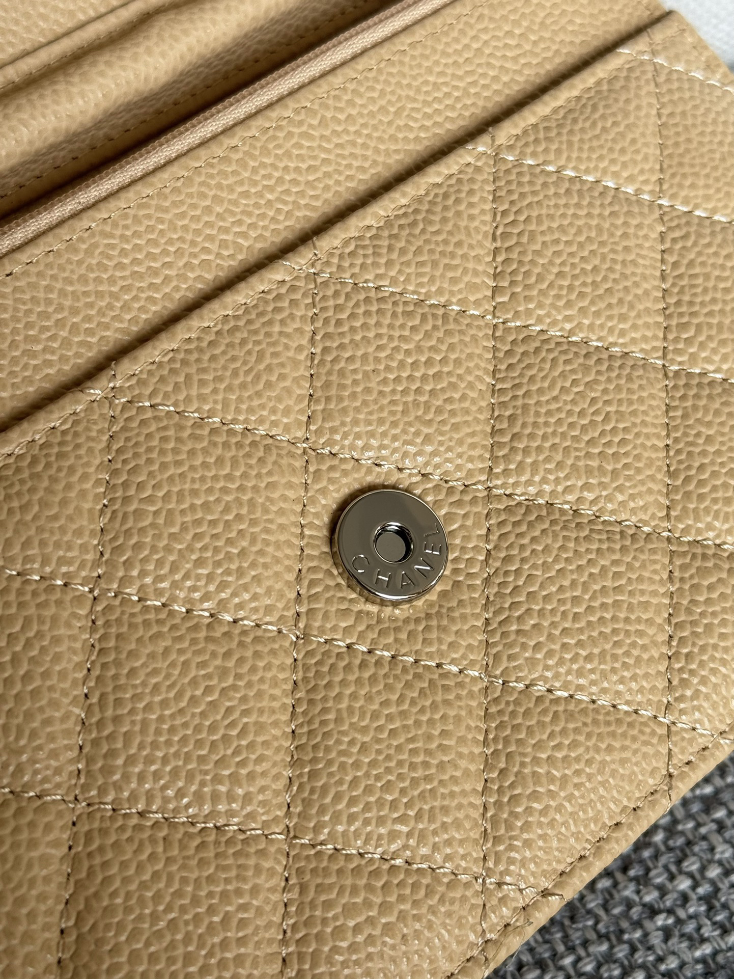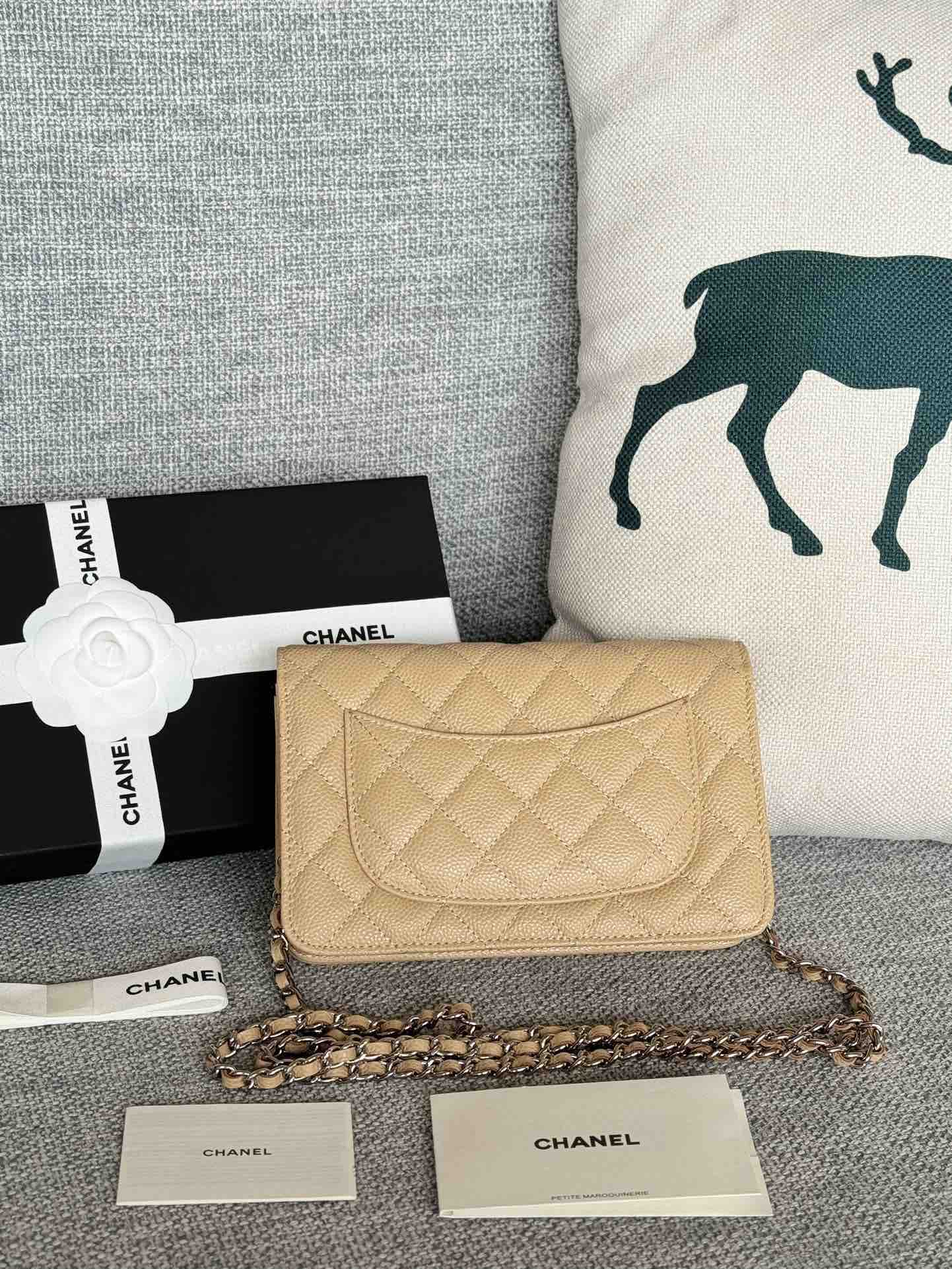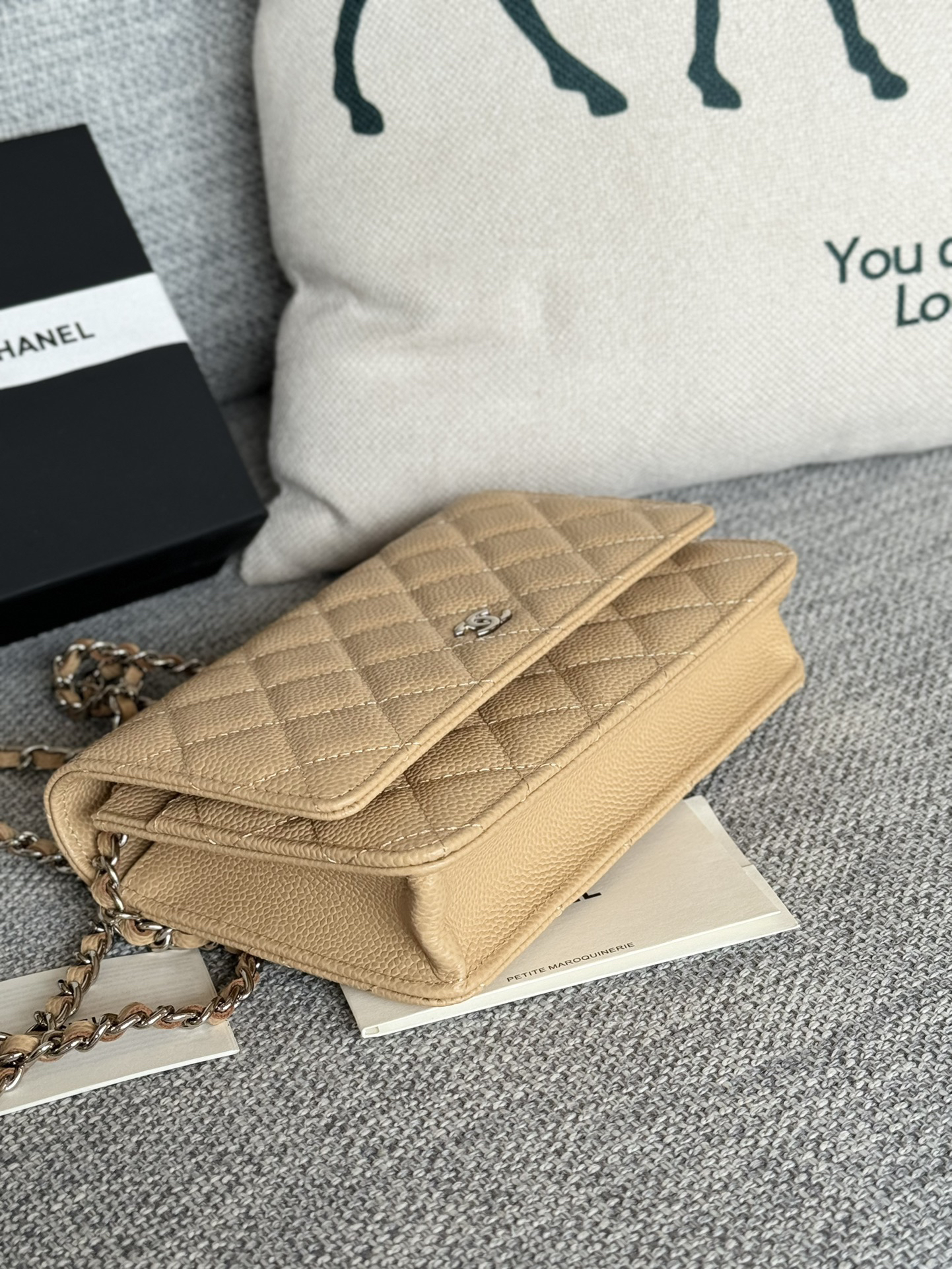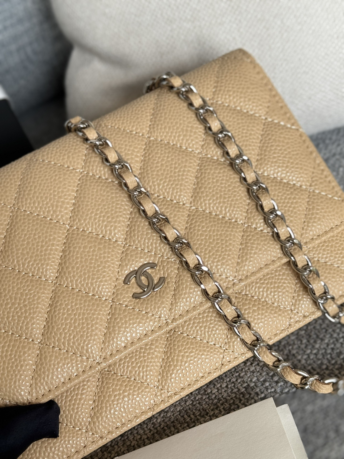 香奈儿woc链条包🉐️牛皮-杏色银扣(粗球纹)
