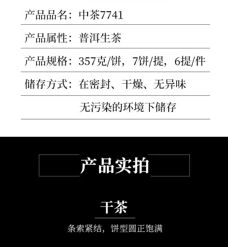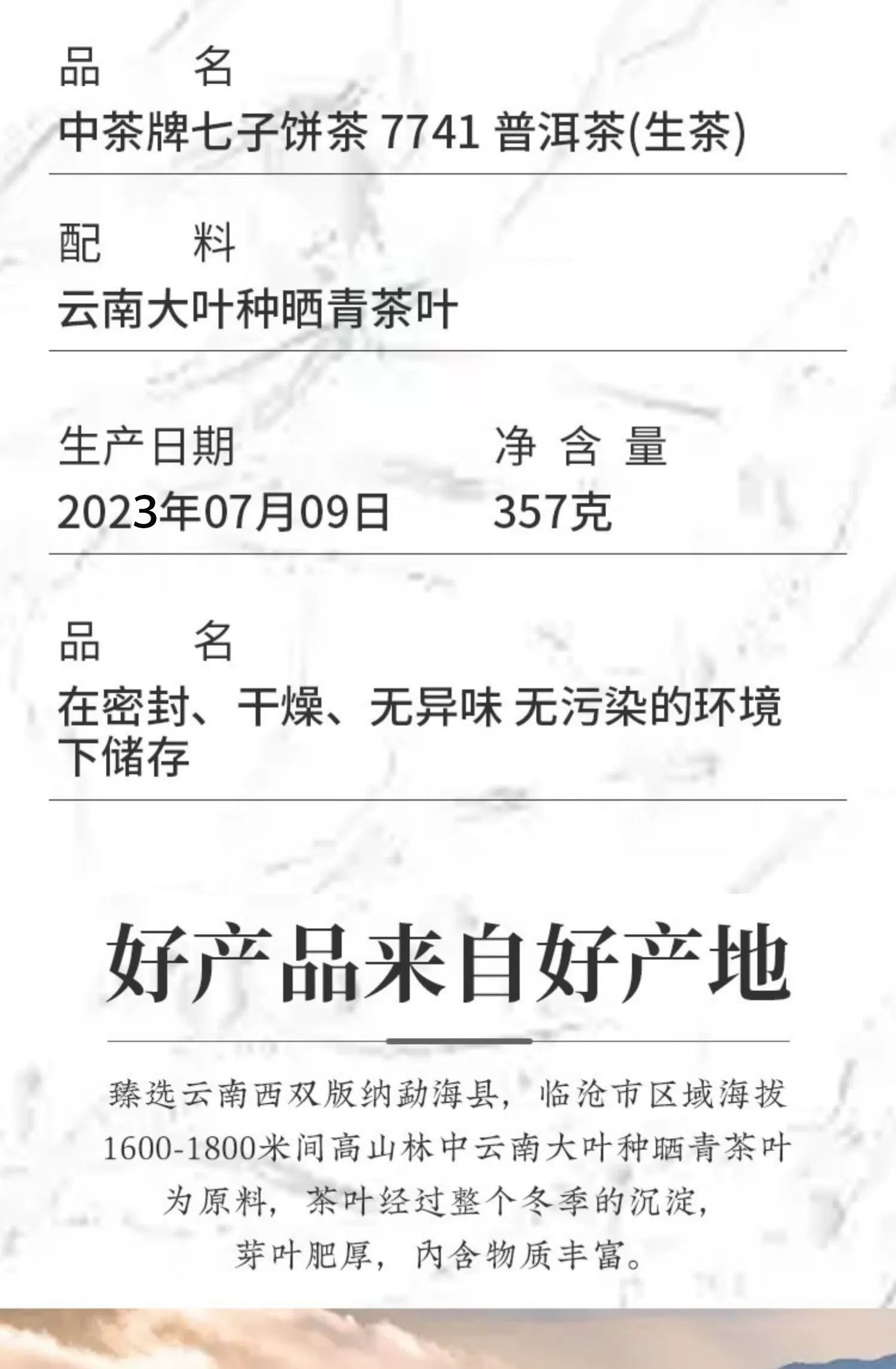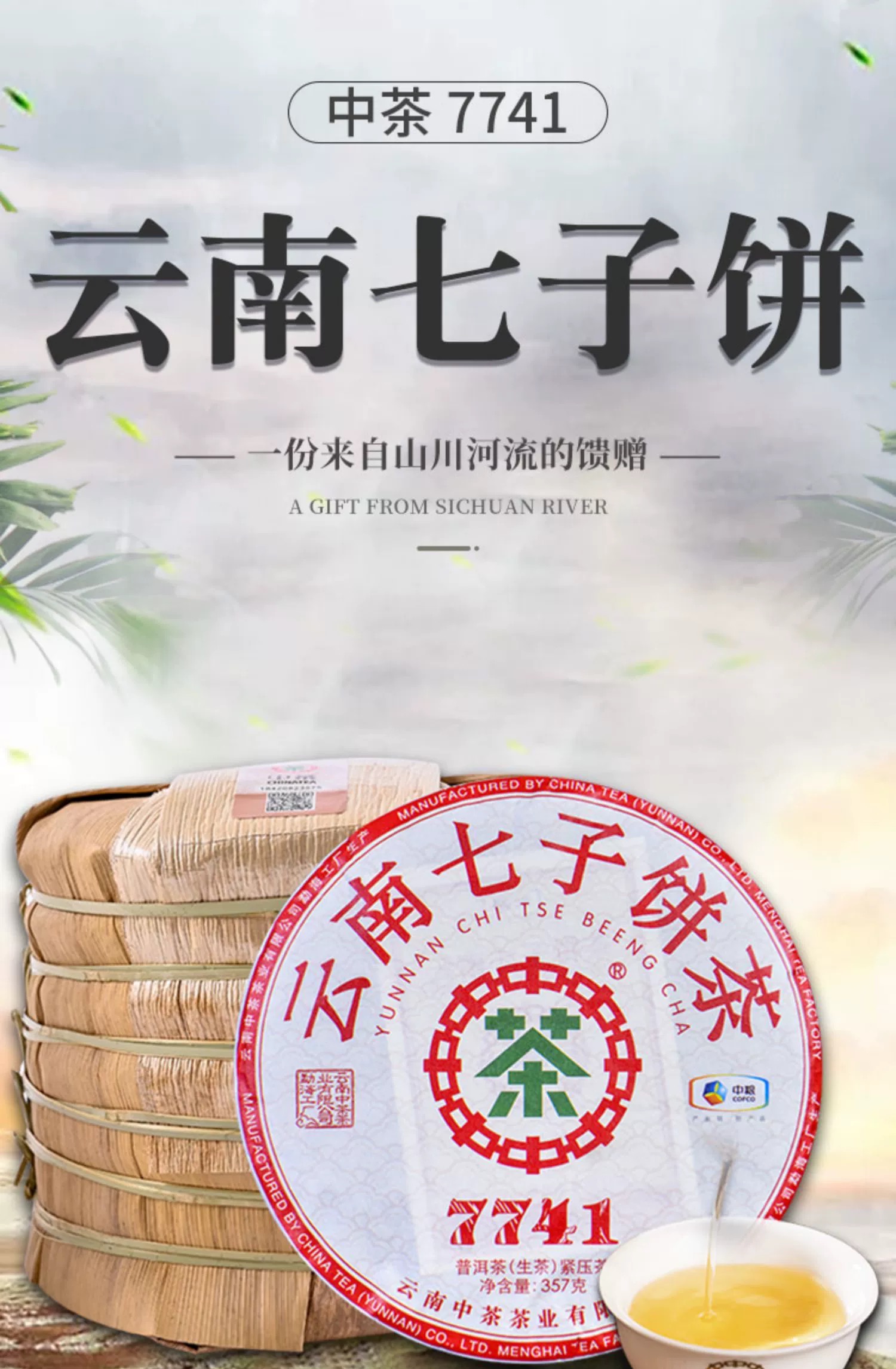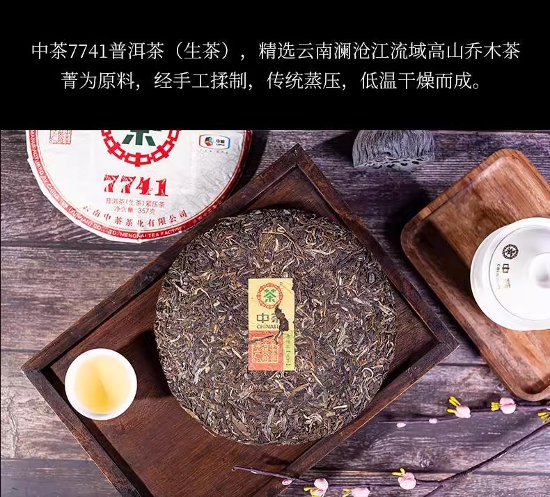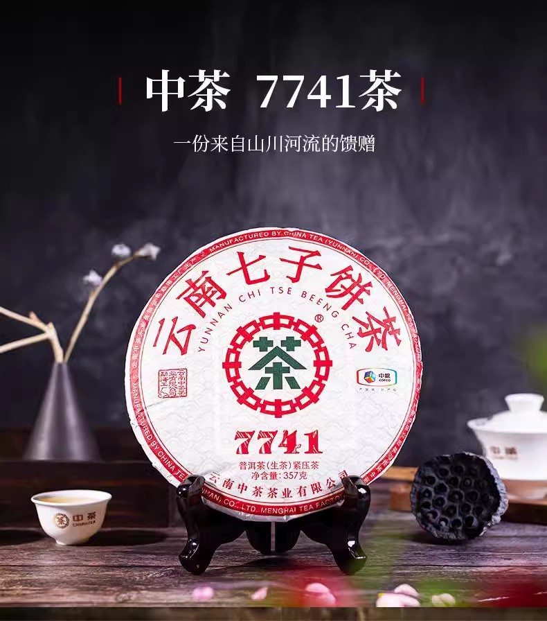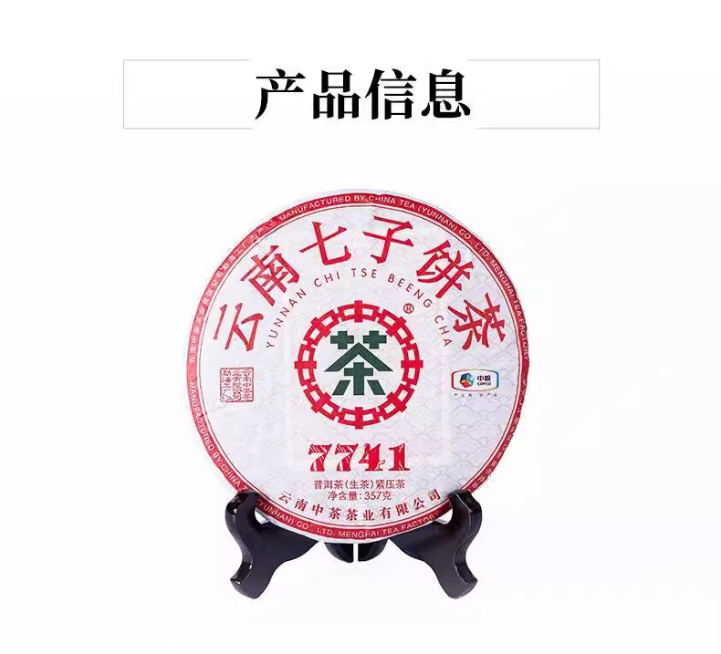 中粮-中茶云南七子饼普洱茶2022年经典唛号7741普洱生茶357克 /云南干仓直发