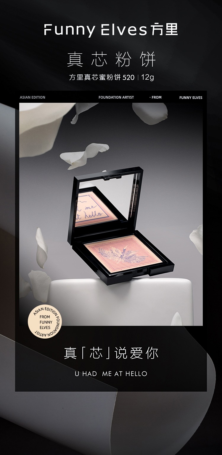 Funny Elves情书粉饼12g赠告白球+吸油纸+植绒粉扑+三角海绵粉扑 定妆补妆控油遮瑕