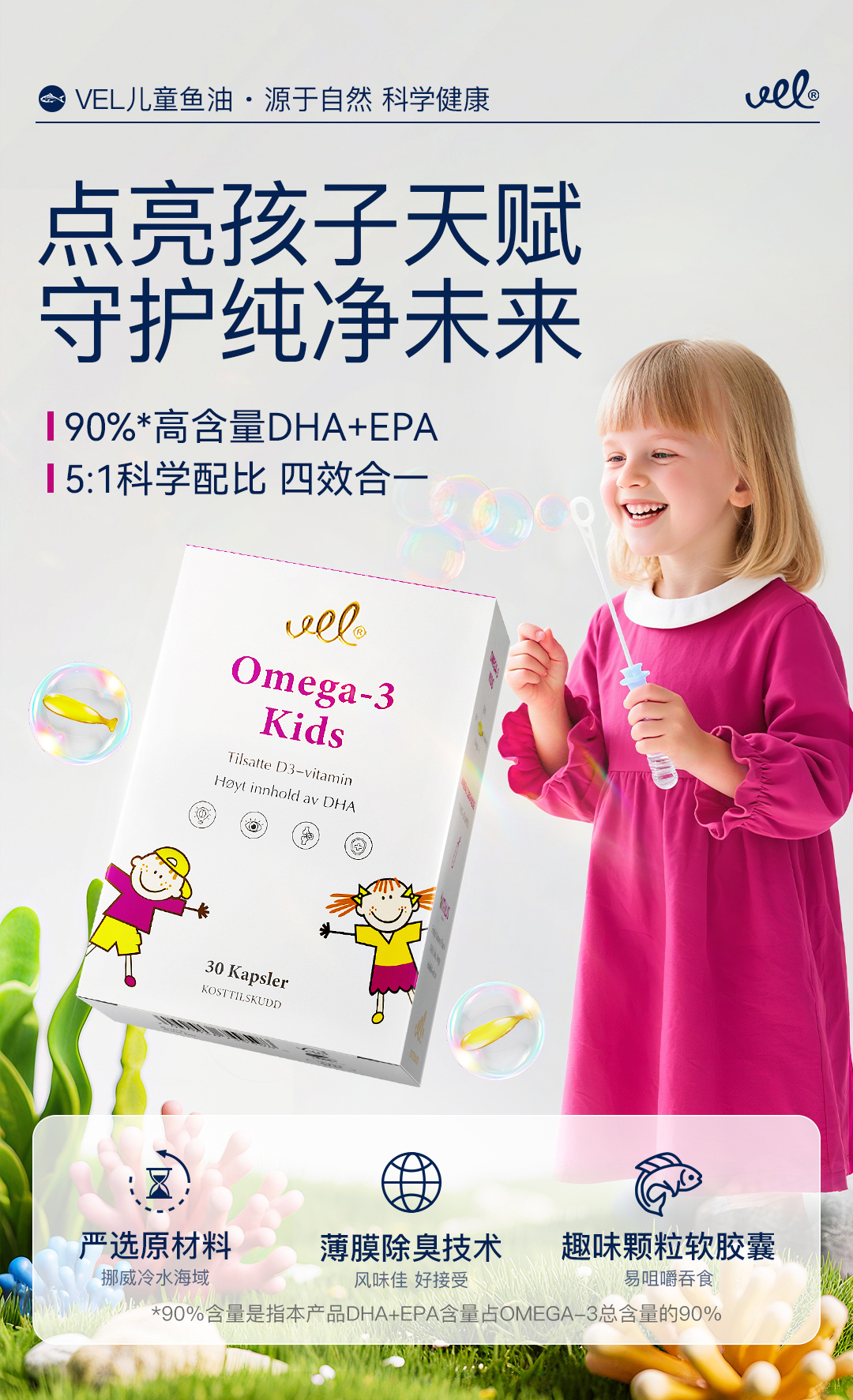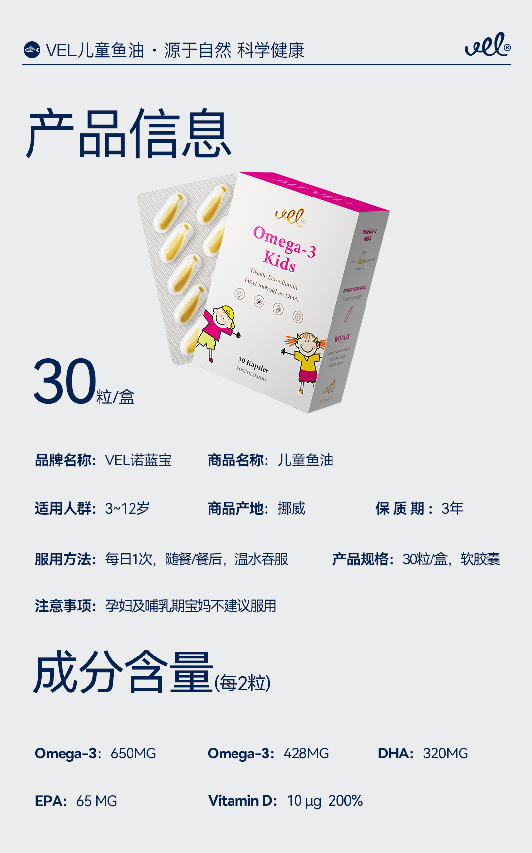 VEL挪威进口儿童深海鱼油青少年DHA