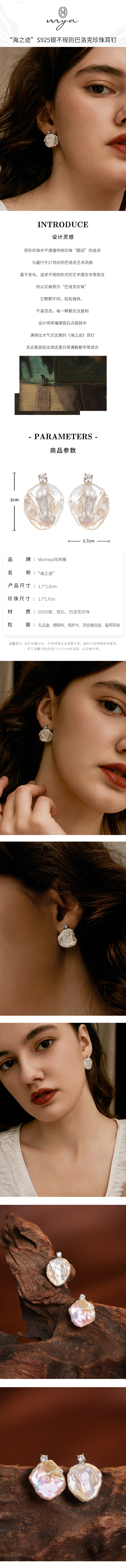 Manreya玛芮雅“海之迹”S925银天然巴洛克珍珠耳钉